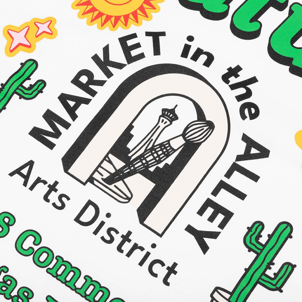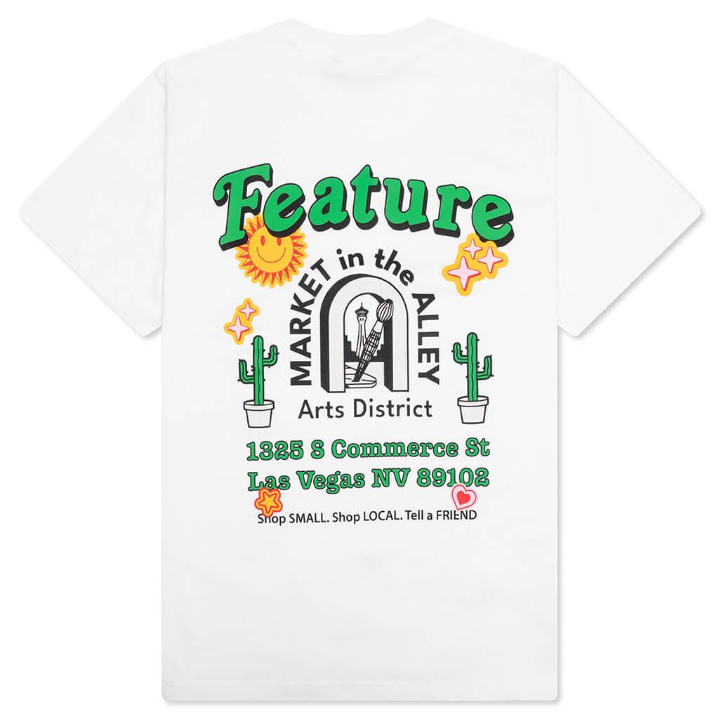 The FEATURE x Market in the Alley Tee was created for our Hidden Gems series, where we highlight the best of local businesses, music, and art in Las Vegas. This Market in the Alley Tee is composed of 100% cotton and features co-branded screen-printed graphics on the chest and back. The crew neckline and ribbed trims complete the look. 100% Cotton Exclusive to FEATURE Crew neckline Ribbed trims Screen-printed graphics Co-branded graphics Style No: F031325X01-WHT