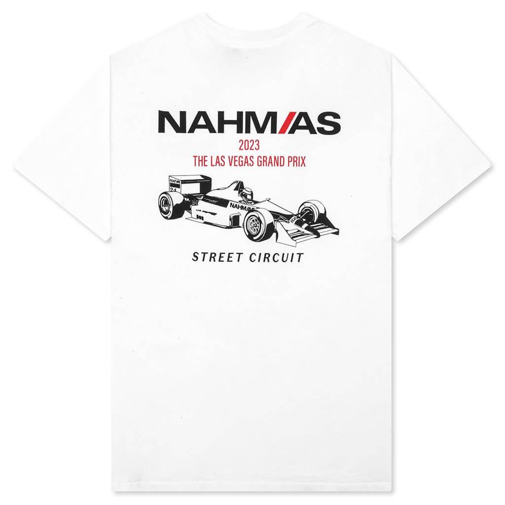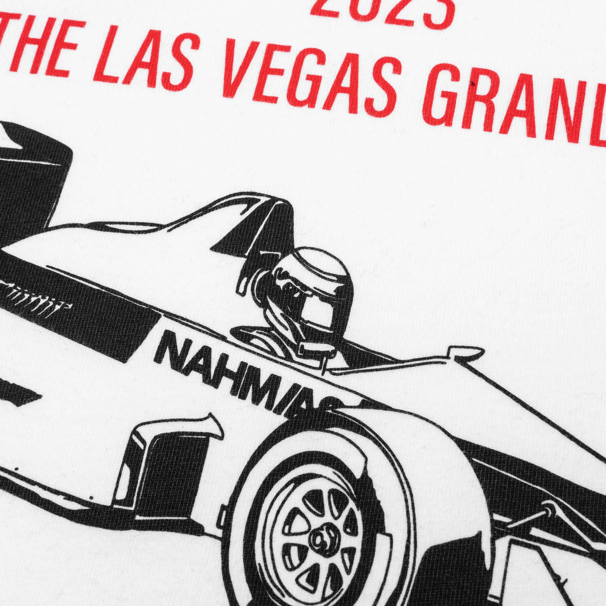 In celebration of the upcoming Las Vegas Grand Prix, FEATURE has teamed up with Nahmias to create a collection of F1 apparel. Introducing the FEATURE x Nahmias F1 Racecar T-Shirt, this premium garment is cut from 100% cotton and features screen-printed graphics at the front and back, sporting F1 Las Vegas iconography. A crew neckline is placed, and ribbed trims are added to complete the look.DUE TO THE LIMITED NATURE OF THIS PRODUCT, ALL SALES ARE FINAL. THIS ITEM IS NOT ELIGIBLE FOR DISCOUNTS OR SPECIAL PROMOTIONS. 100% Cotton Made in Los Angeles Crew neckline Screen-printed graphics Ribbed trims Co-branded graphics Style No: Y1-T9K3-100