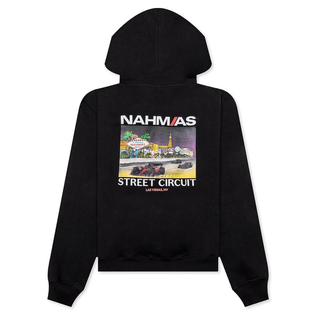 In celebration of the upcoming Las Vegas Grand Prix, FEATURE has teamed up with Nahmias to create a collection of F1 apparel. Introducing the FEATURE x Nahmias Street Circuit Hoodie, this premium garment is cut from 100% cotton and features screen-printed graphics at the front and back, sporting F1 Las Vegas iconography. A hooded collar is placed for warmth, as well as a kangaroo pocket, completing the design. DUE TO THE LIMITED NATURE OF THIS PRODUCT, ALL SALES ARE FINAL. THIS ITEM IS NOT ELIGIBLE FOR DISCOUNTS OR SPECIAL PROMOTIONS. 100% Cotton Made in Los Angeles Hooded collar Screen-printed graphics Kangaroo pocket Co-branded graphics Style No: Y2-H1K1-001