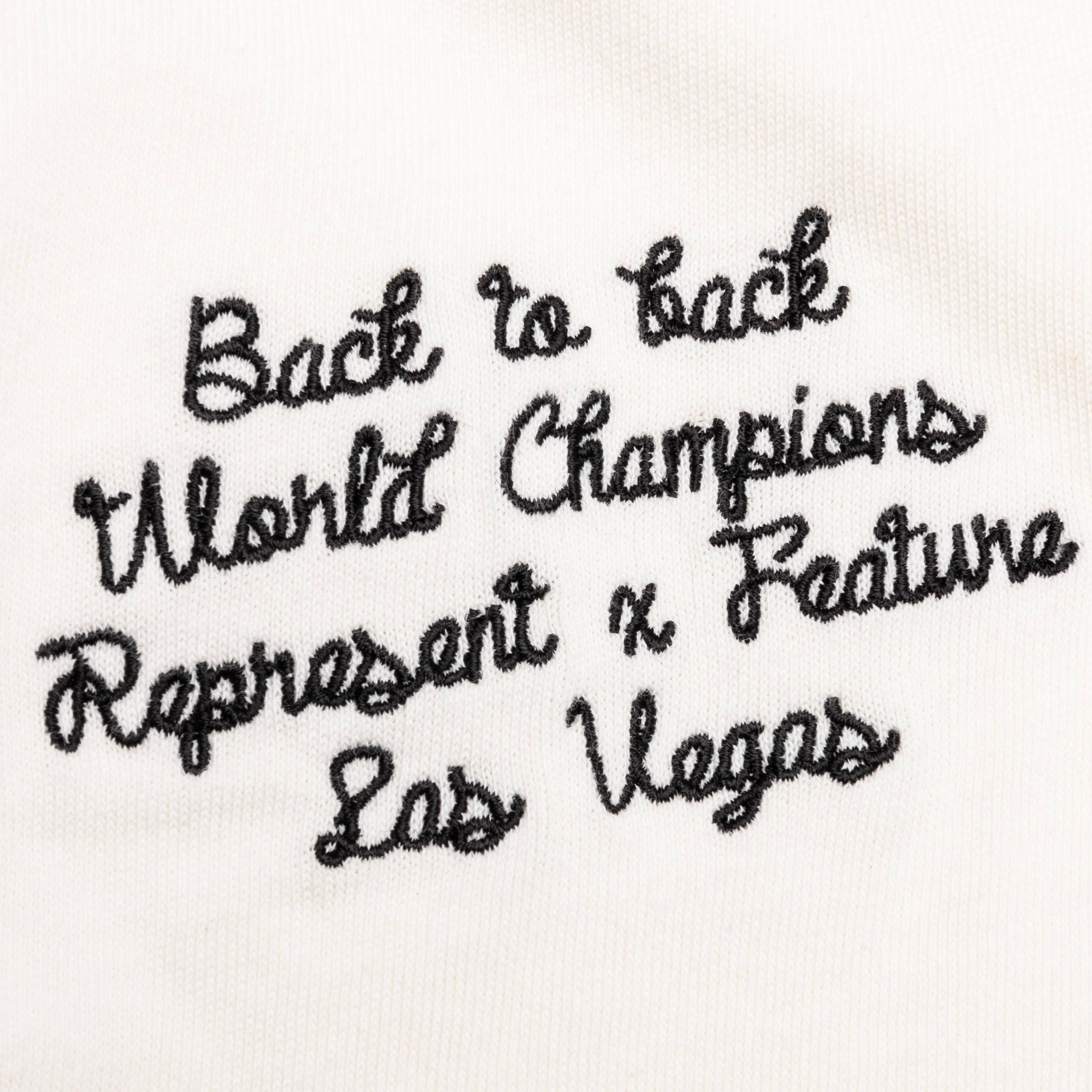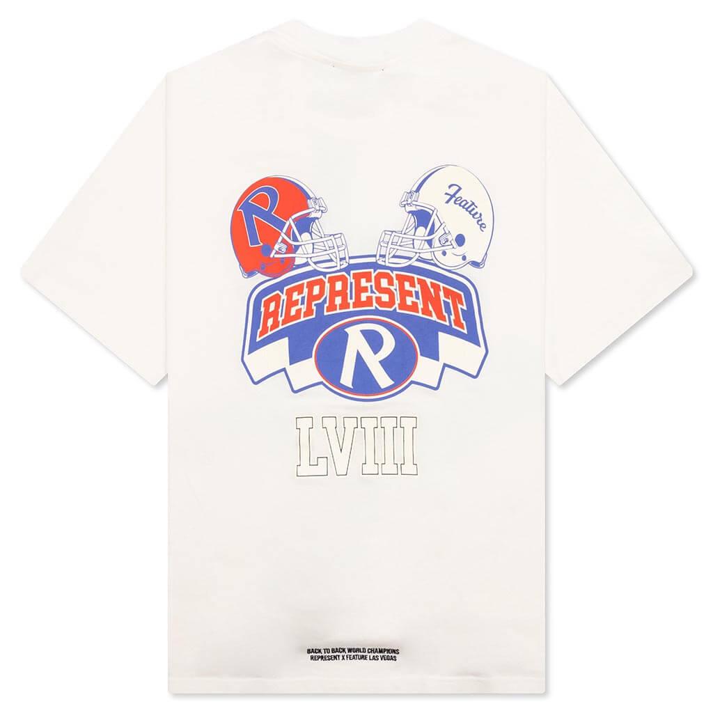 Made in collaboration with UK based brand, FEATURE x Represent's exclusive capsule collection arrives the Champions T-Shirt, made with a clean white wash and an original double branded graphic for Super Bowl LVIII in Las Vegas. DUE TO THE NATURE OF THIS PRODUCT, ALL SALES ARE FINAL. THIS ITEM IS NOT ELIGIBLE FOR DISCOUNTS OR SPECIAL PROMOTIONS. Standard fit Crew neckline Waist length Style No: MLM4298-72