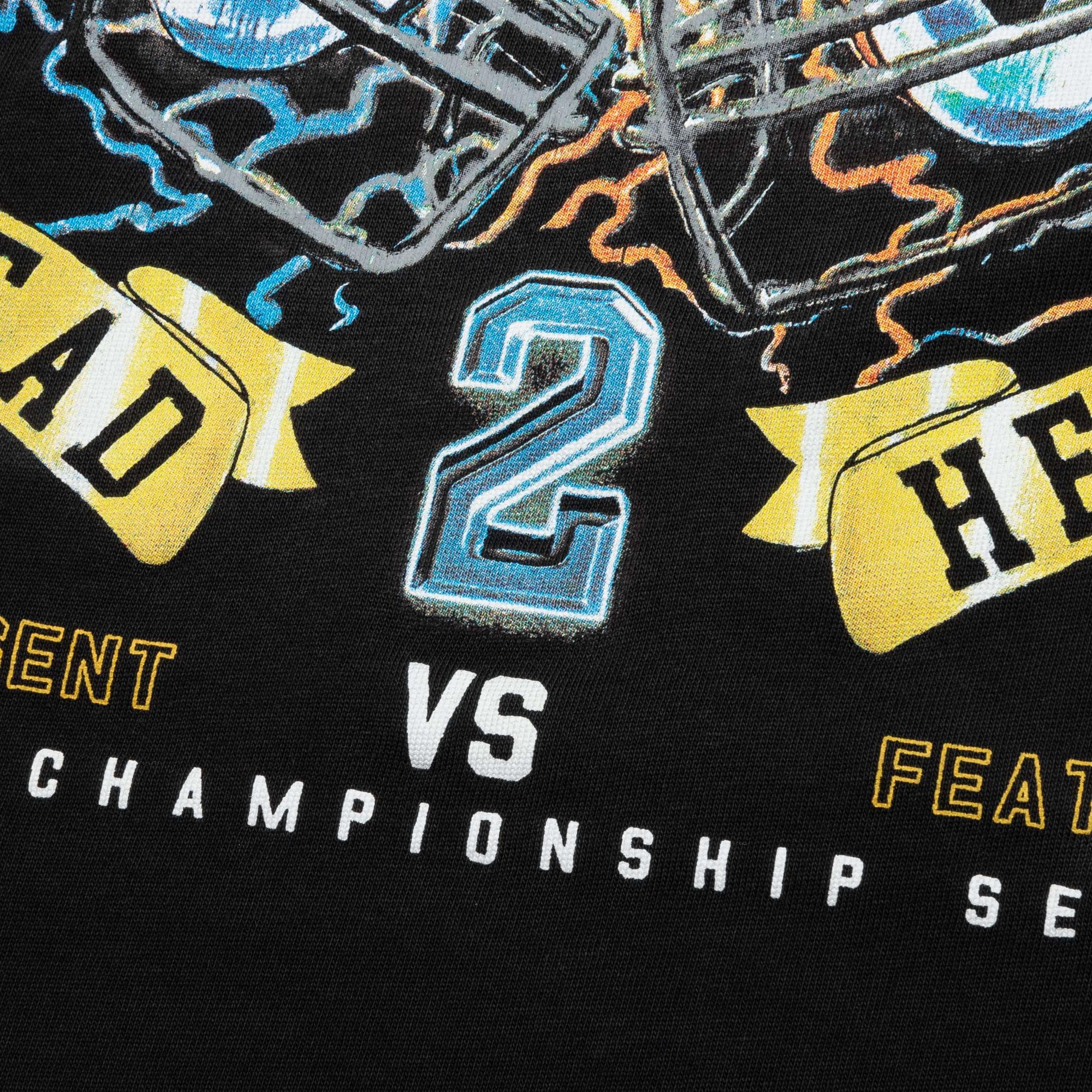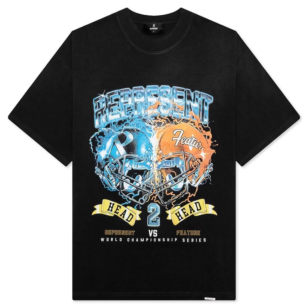 Made in collaboration with UK based brand, FEATURE x Represent's exclusive capsule collection arrives the Head 2 Head T-Shirt, made with a clean vintage wash and an original double branded graphic for Super Bowl LVIII in Las Vegas. DUE TO THE NATURE OF THIS PRODUCT, ALL SALES ARE FINAL. THIS ITEM IS NOT ELIGIBLE FOR DISCOUNTS OR SPECIAL PROMOTIONS. Standard fit Crew neckline Waist length Style No: MLM4302-230