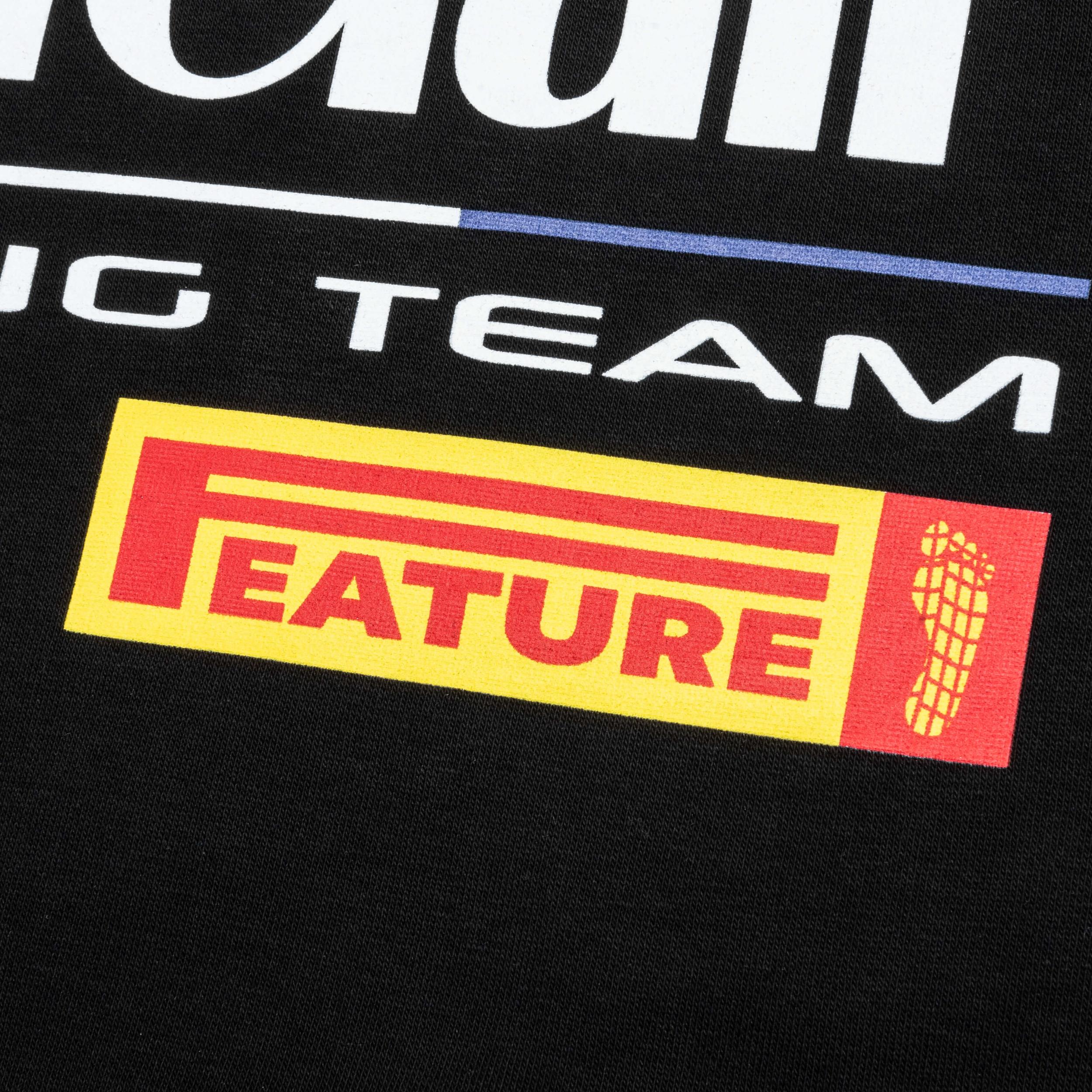 The FEATURE x Sinclair Pit Crew Hoodie in Black channels motorsport aesthetics with a comfortable, street-ready design. Made from cotton, this hoodie features an attached hood with adjustable drawstrings and a kangaroo pocket for added functionality. Embroidered branding on the front and a bold, racing-inspired graphic complete the look, making it a distinctive addition to any casual lineup. THIS PRODUCT DOES NOT QUALIFY FOR DISCOUNTS OR SPECIAL PROMOTIONS. ALL SALES ARE FINAL. 100% Cotton Attached hood Adjustable drawstrings Embroidered branding on front Motorsport inspired graphic Kangaroo pocket Style No: SMT261-BLK
