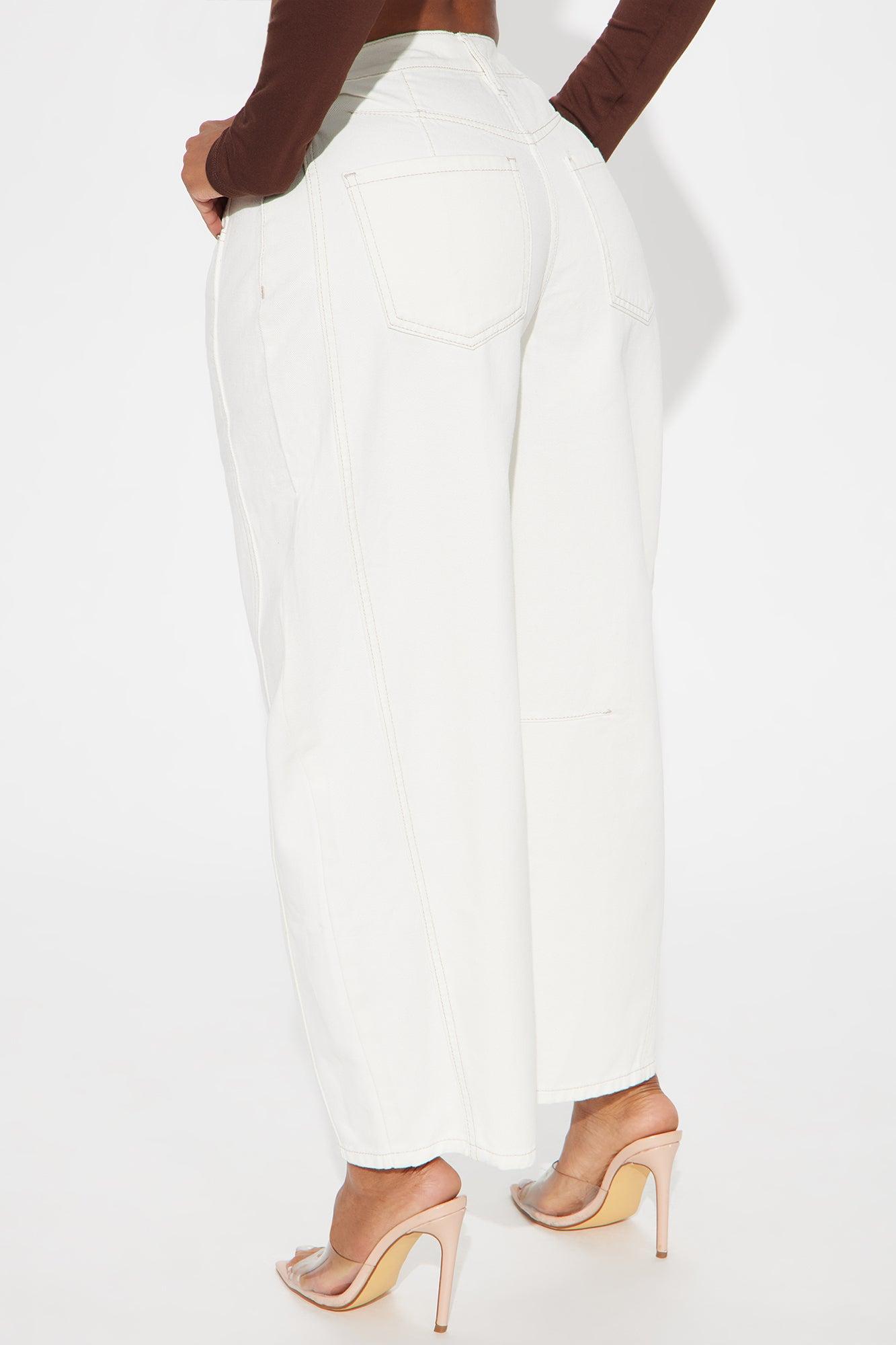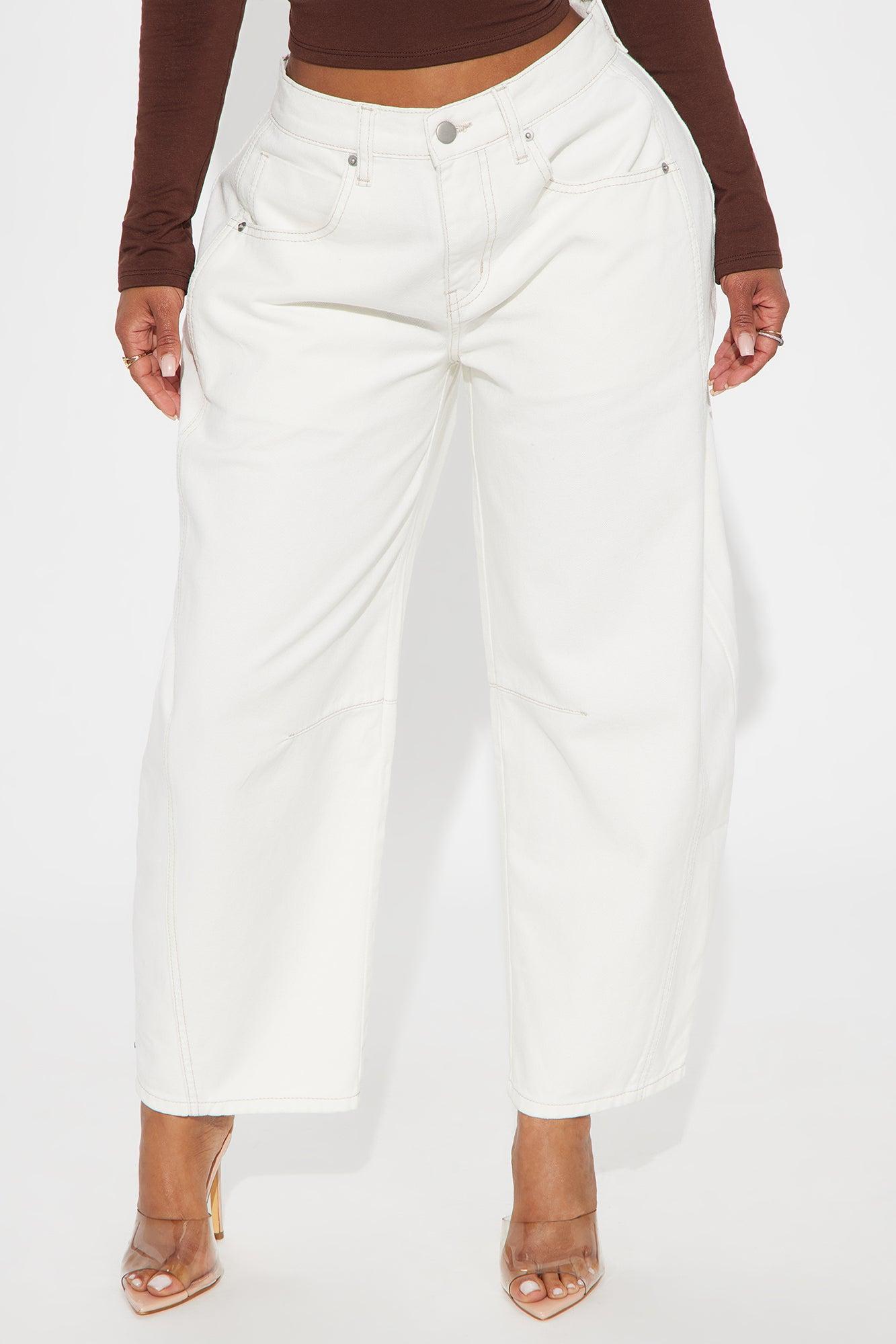 Available In Black And Cream. Barrel Pant Mid Rise Button & Zip Closure Hand & Back Pockets Contrast Stitching Detail Non Stretch 25" Inseam 100% Cotton Imported California Proposition 65 WARNING: Cancer and Reproductive Harm - www.P65Warnings.ca.gov.