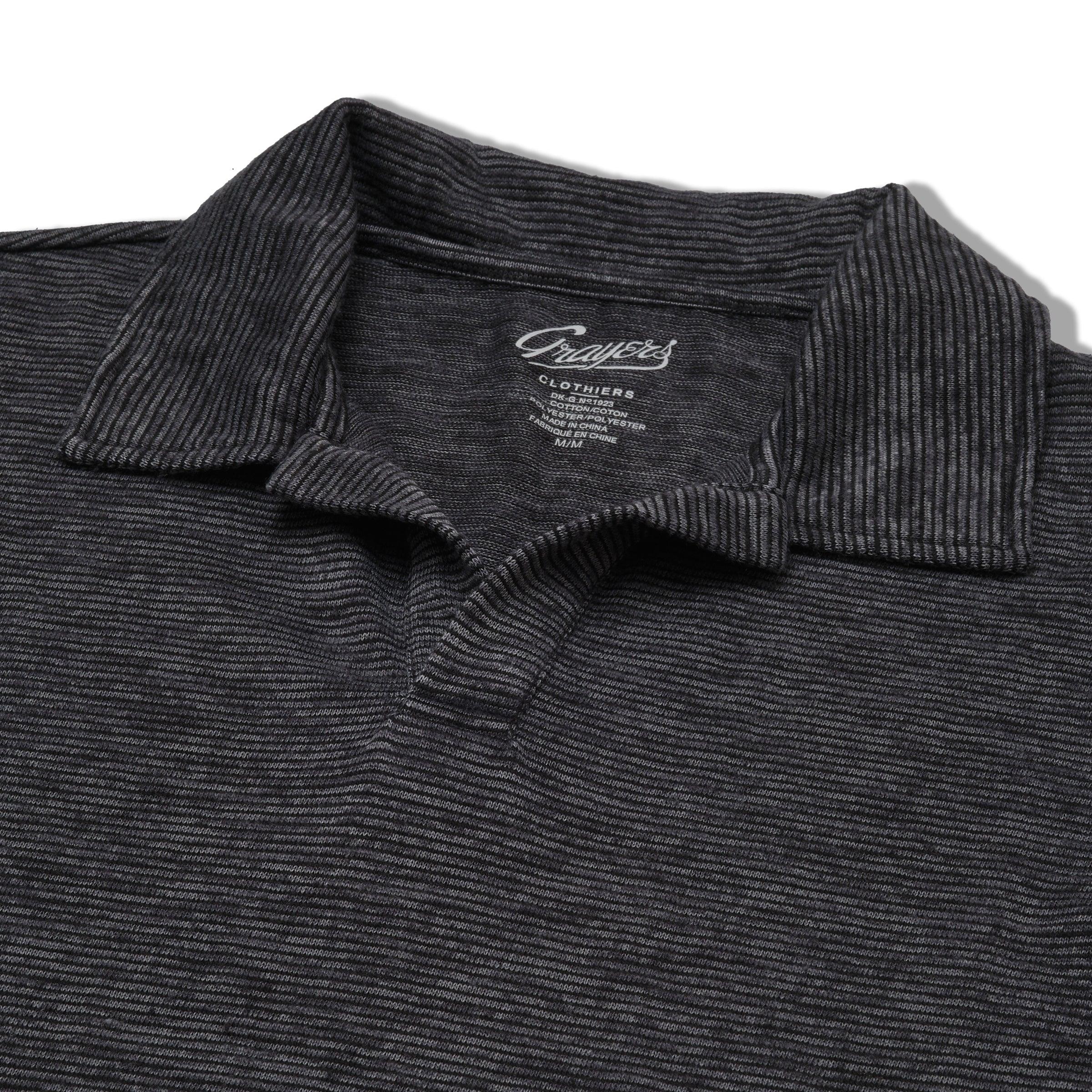 This one blurs the line between retro charm and modern ease. A barely-there stripe, a slubby textured knit, and that signature Johnny collar. Throw it on with our Thompson Shorts or any of your favorite Grayers bottoms—it’s the kind of shirt that makes getting dressed feel like a win. ----Details---- Johnny collar for a retro edge Subtle tonal stripe with slub texture Cotton/poly blend with a soft, breathable feel Laid-back look, polished finish Wears well tucked or untucked Imported ----Materials---- 67% Cotton 33% Polyester ----Size & Fit---- Measuring Method: All measurements are in inches and based on a flat garment, as shown below. For comparison with one of your existing garments, please lay garment on a flat surface and follow the key measurement points. For chest and neck, if you double the flat measurement, you will get close to the full body measurement. ----Care---- Machine Wash Cold Separately Do Not Soak Before Washing Do Not Bleach Remove Promptly Tumble Dry Low Or Hang Dry In Shaded Area Cool Iron If Necessary