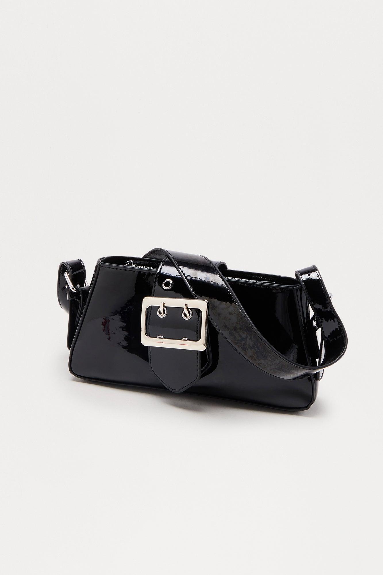 Feel A Way Faux Patent Leather Shoulder Bag - Black Female