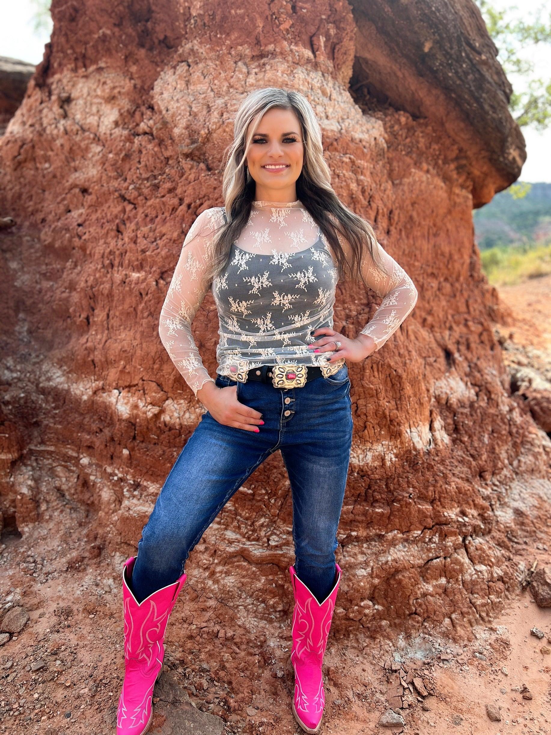Feel Like A Woman Lace Mesh Top| Gussied Up Online Boutique Unleash your inner beauty and confidence with our Feel Like A Woman Lace Mesh Top. This sexy chic top features a high neck and delicate lace detailing, elevating any outfit to a new level of sophistication. Whether worn alone for a daring look or layered for a more subtle edge, this sheer top offers endless styling possibilities. Keep up with the latest trends and add a touch of elegance to your wardrobe.