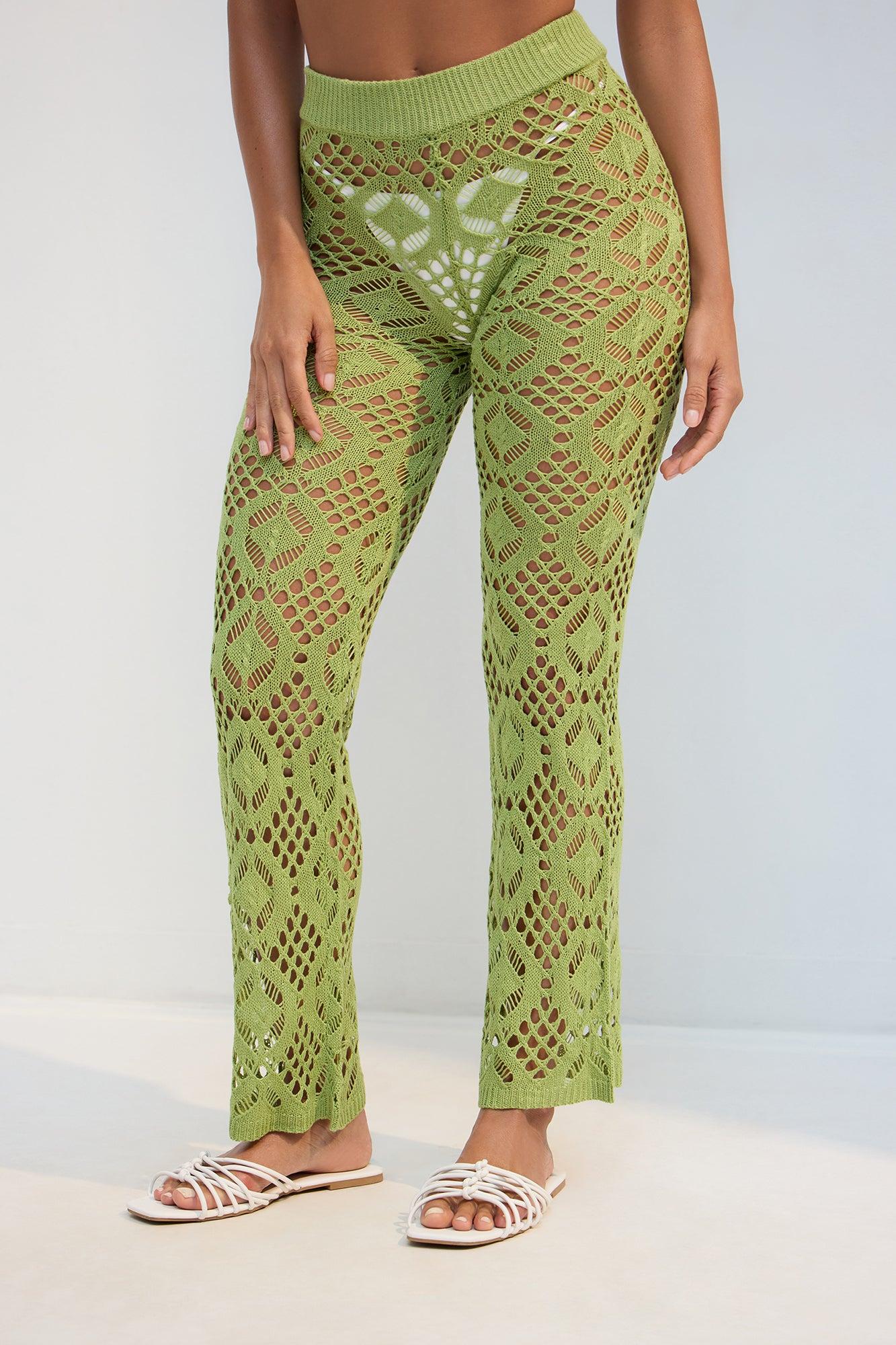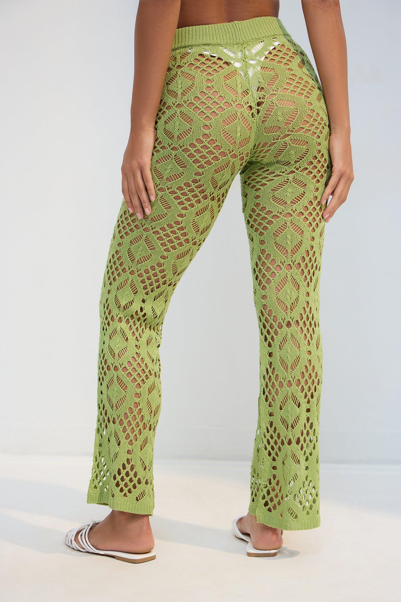 Feel The Breeze Crochet Cover Up Pants - Lime