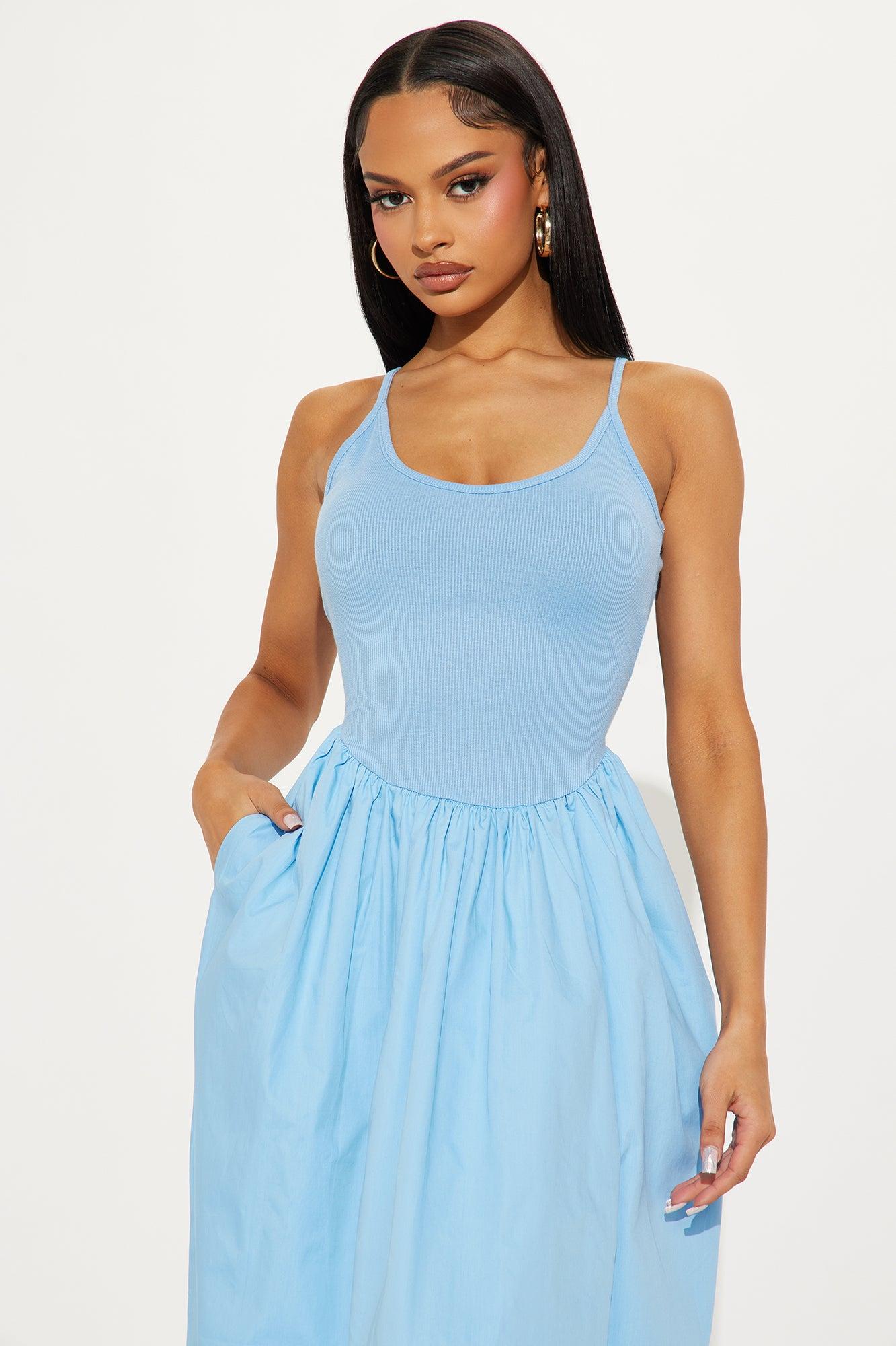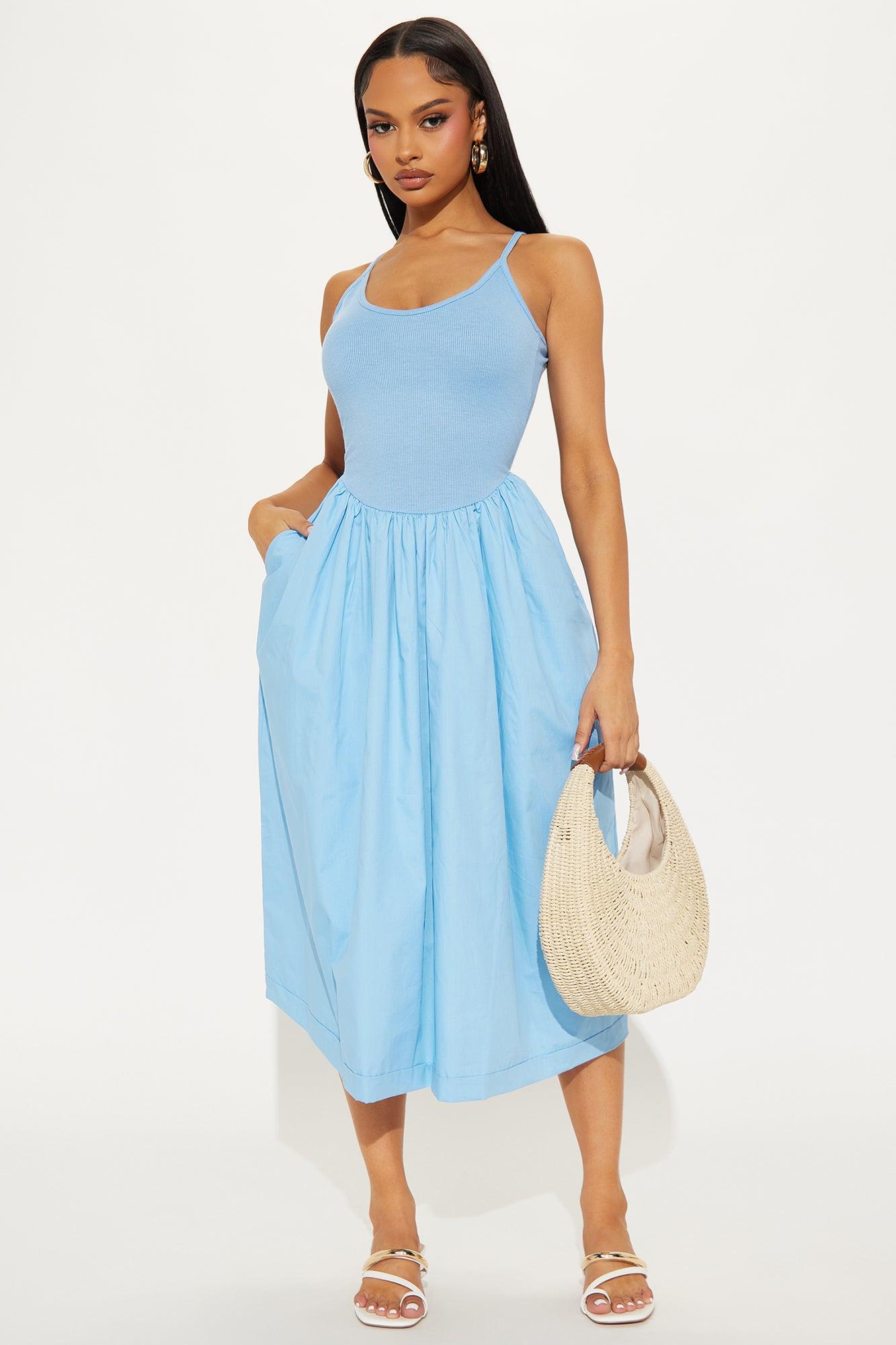 Feel The Breeze Poplin Midi Dress - Blue
