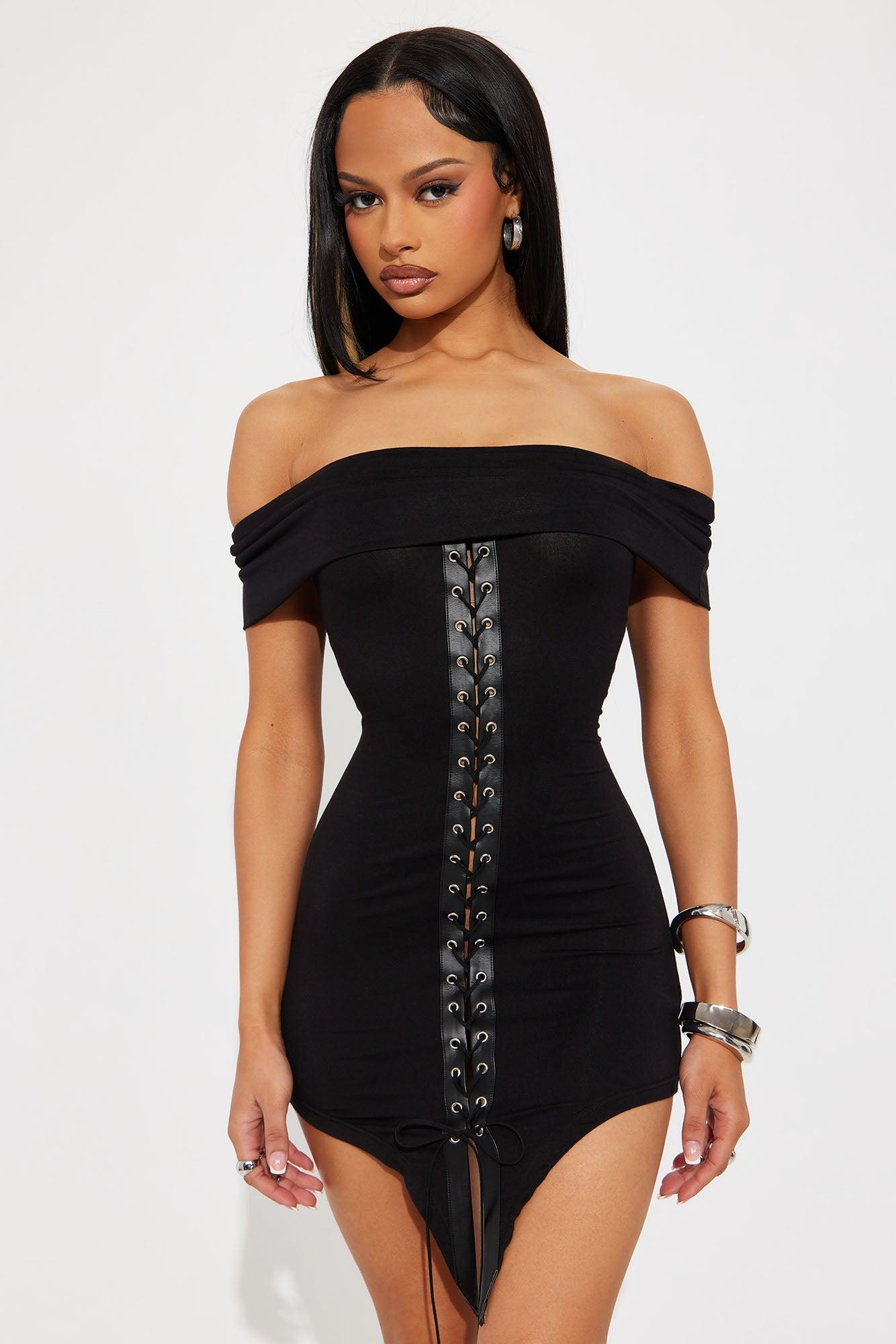 Feel The Music Lace Up Mini Dress - Black