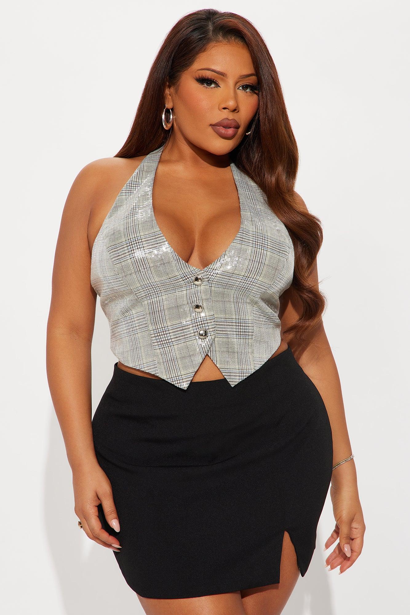 Feel The Sparks Plaid Sequin Vest - Grey/combo Female