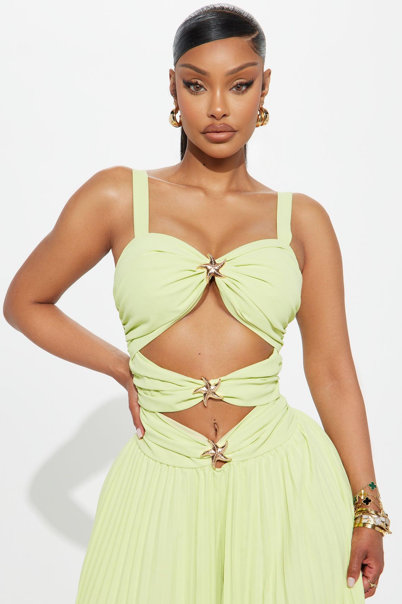 Available In Lime And Brown. Jumpsuit Non Stretch Adjustable Straps Hardware Detail Back Smocking Back Zipper Wide Leg 33" Inseam Self: 100% Polyester Lining: 100% Polyester Imported California Proposition 65WARNING: Cancer and Reproductive Harm - www.P65Warnings.ca.gov.