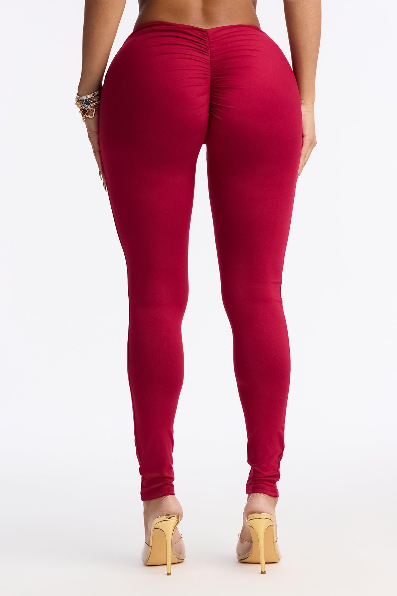 Feeling Cheeky Mid Rise Ruched Butt Legging - DarkRed Female