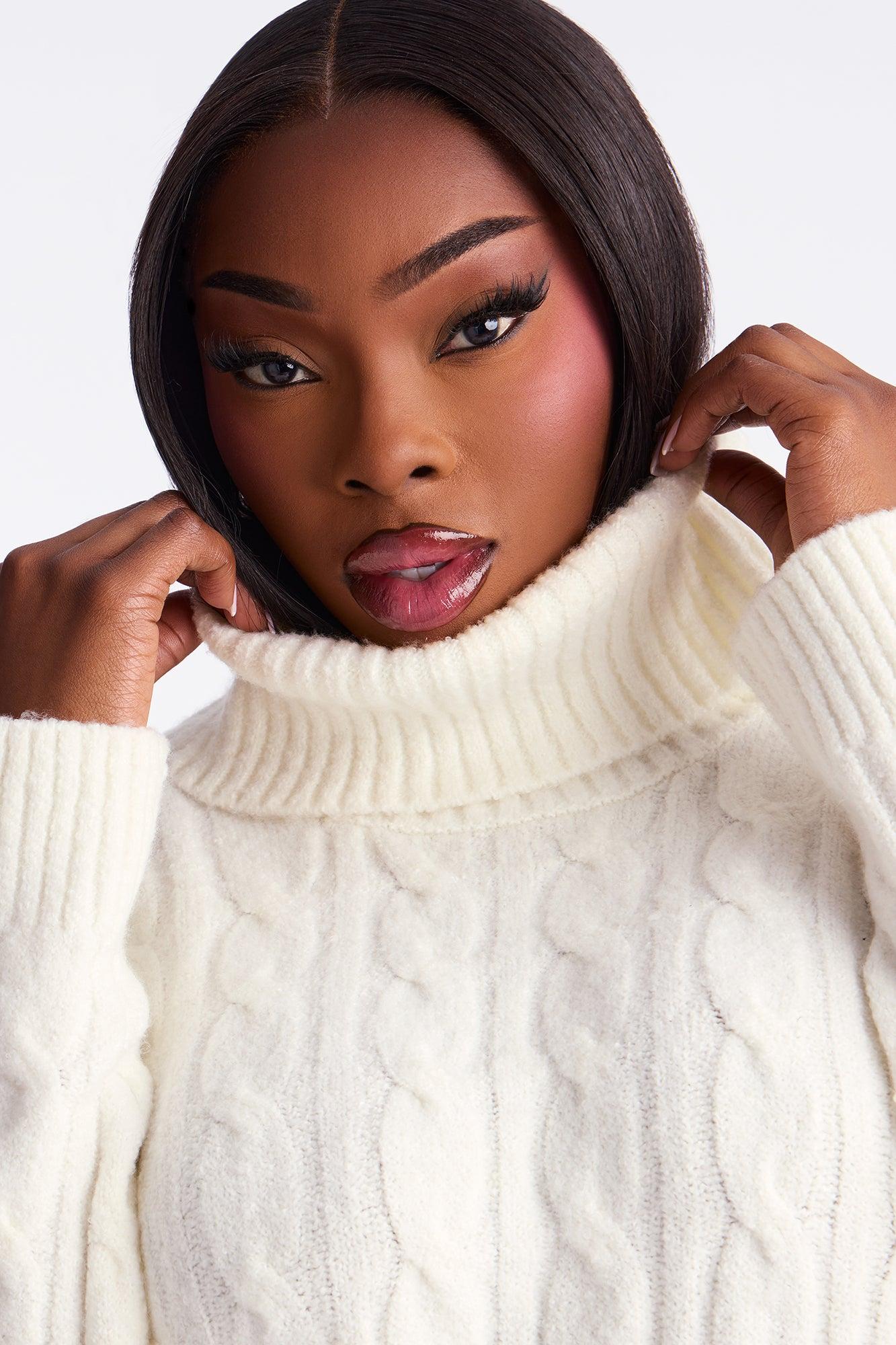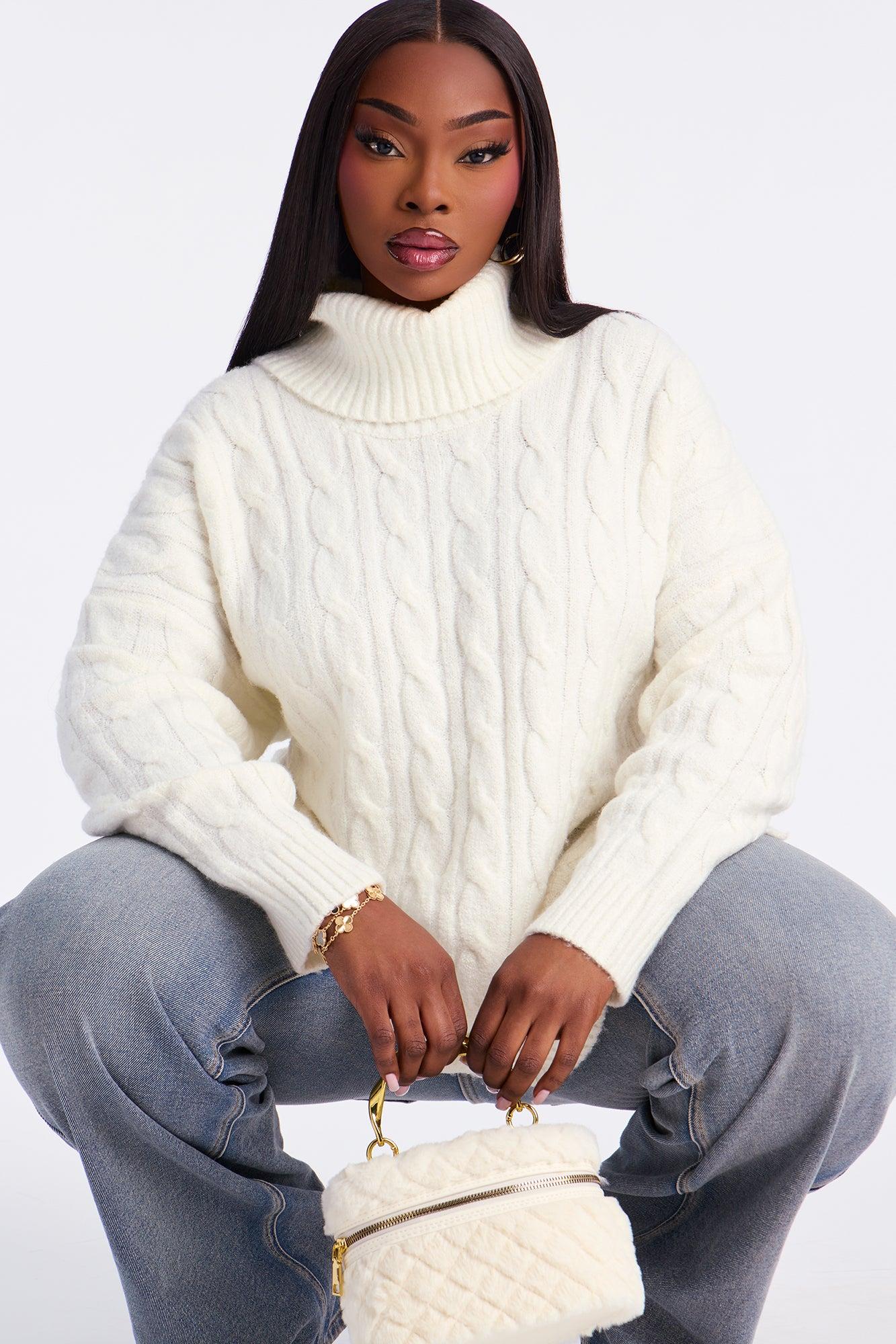 Feeling Chill Cable Knit Turtle Neck Sweater - Ivory Female