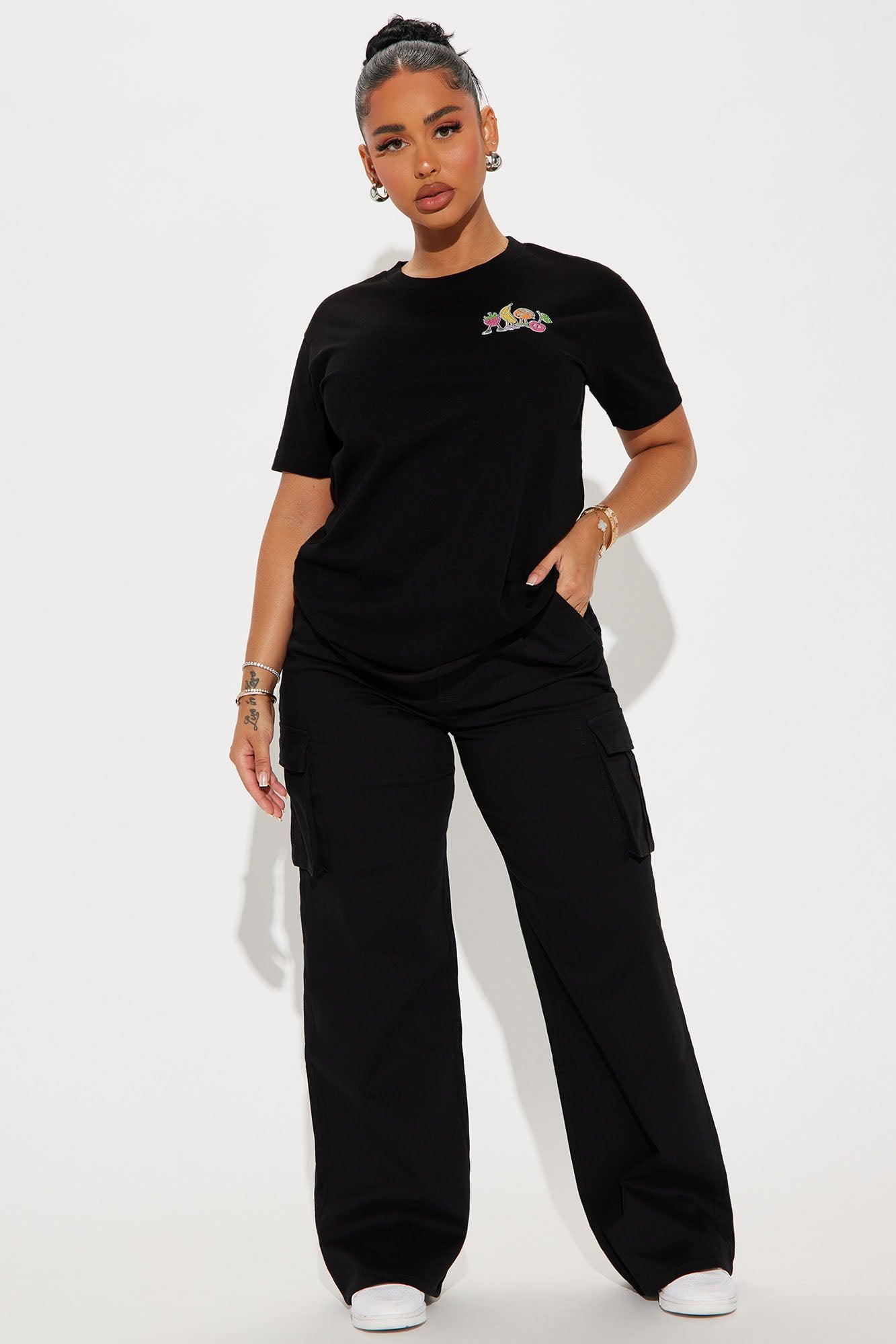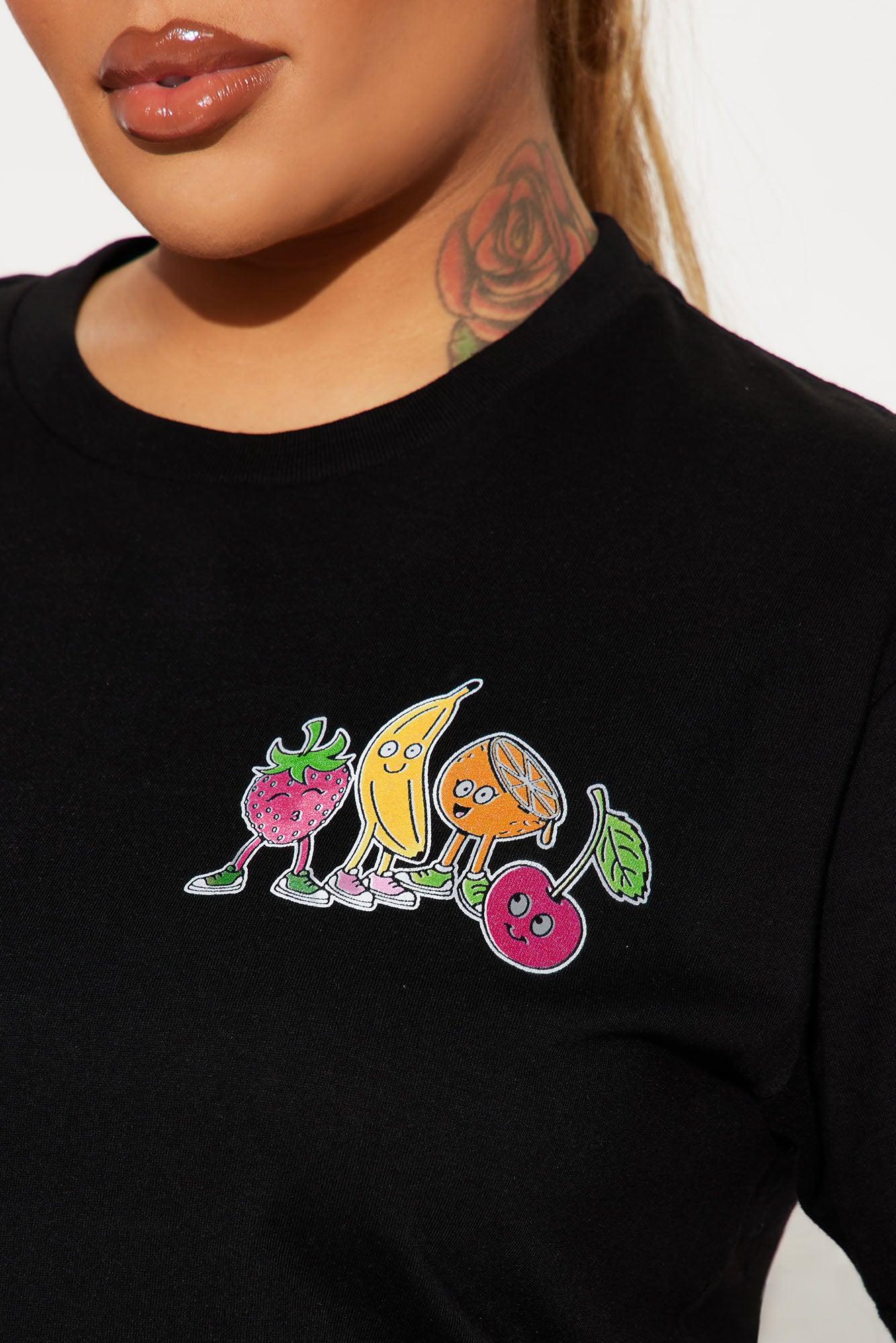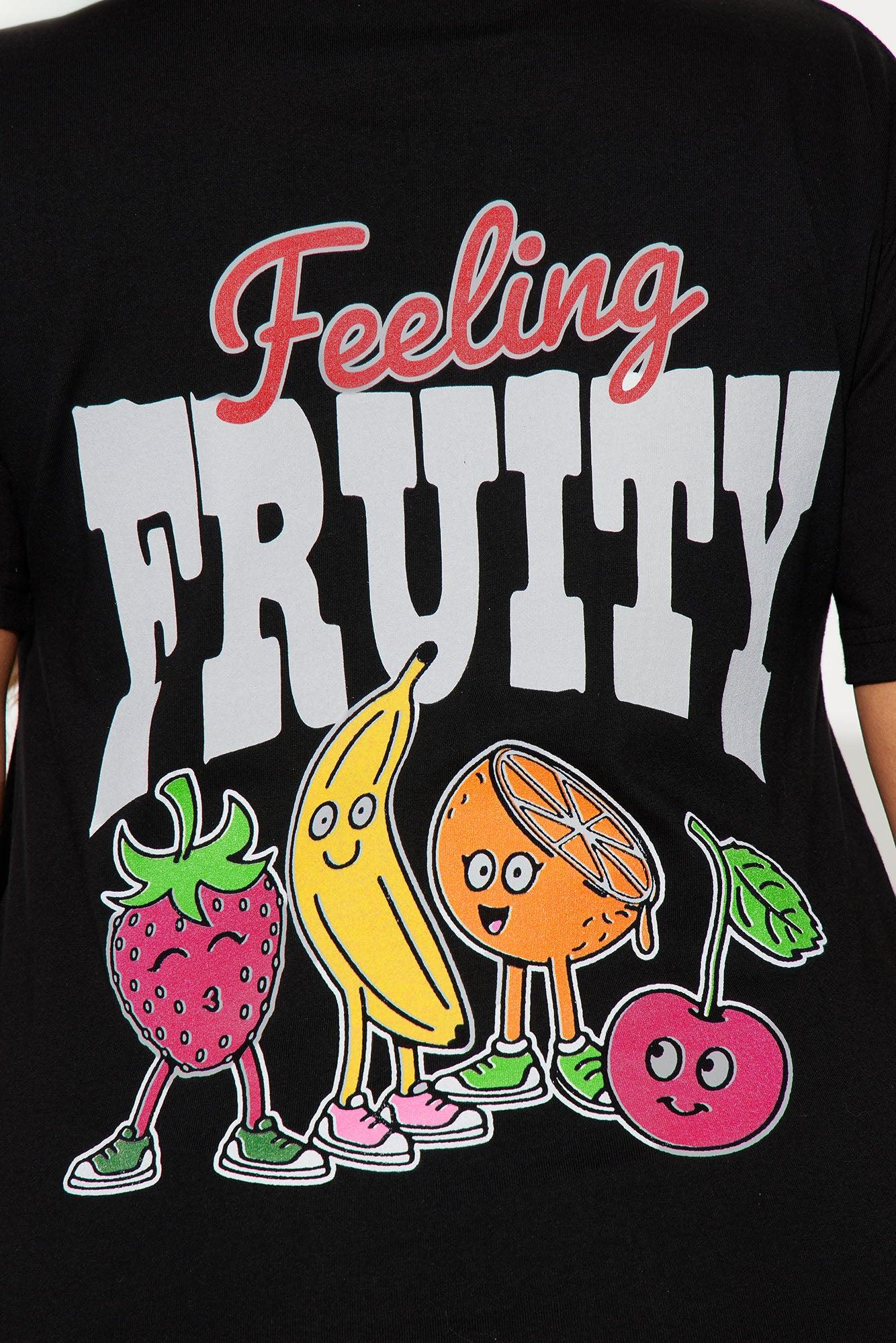 Available In Off White And Black. Crew Neck Short Sleeve Front And Back Screen "Feeling Fruity" Verbiage Disclaimer: Due To The Specialized Screen Print, A Difference In Saturation May Occur. Each Garment Is Unique. 100% Cotton Imported