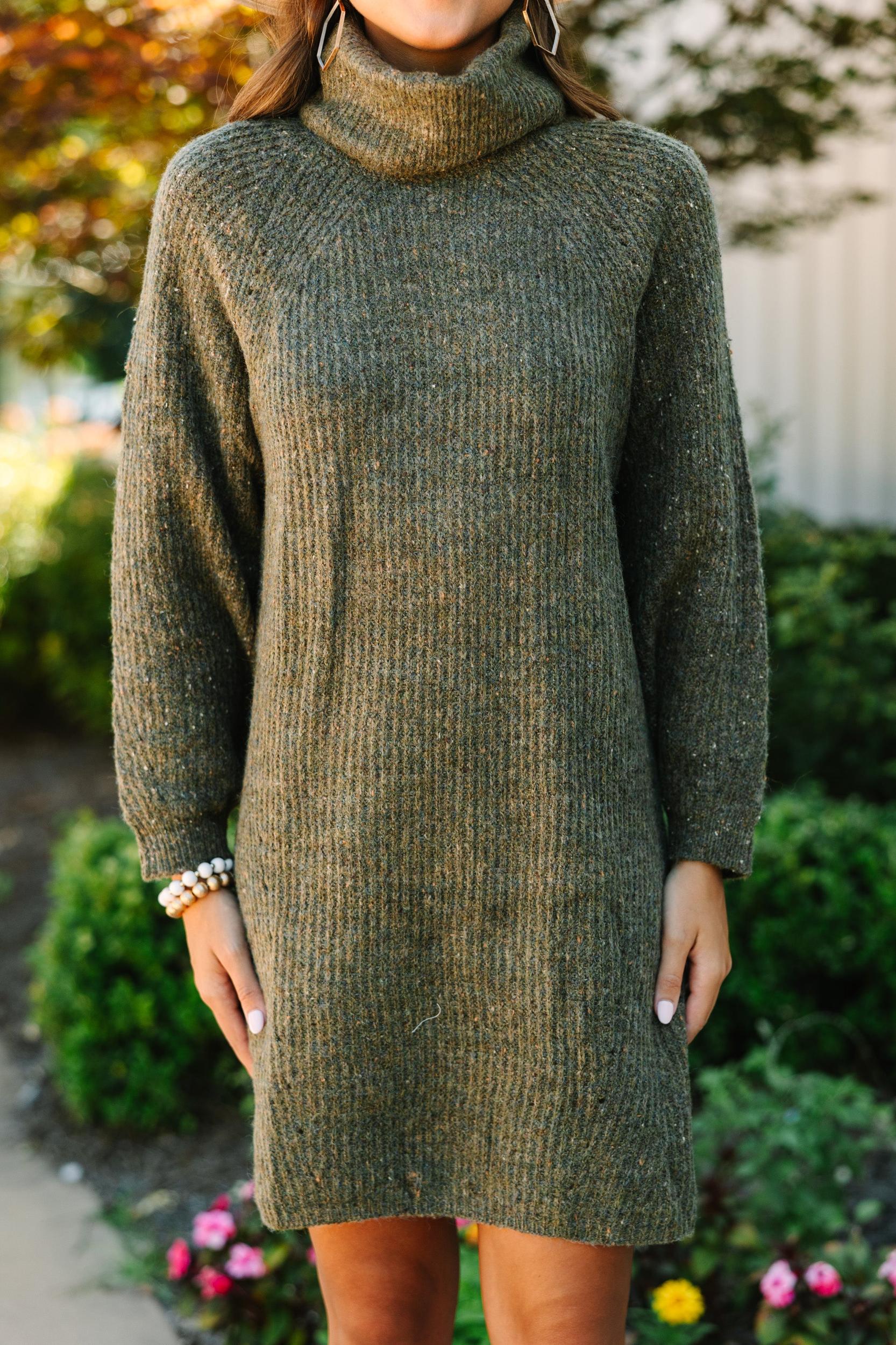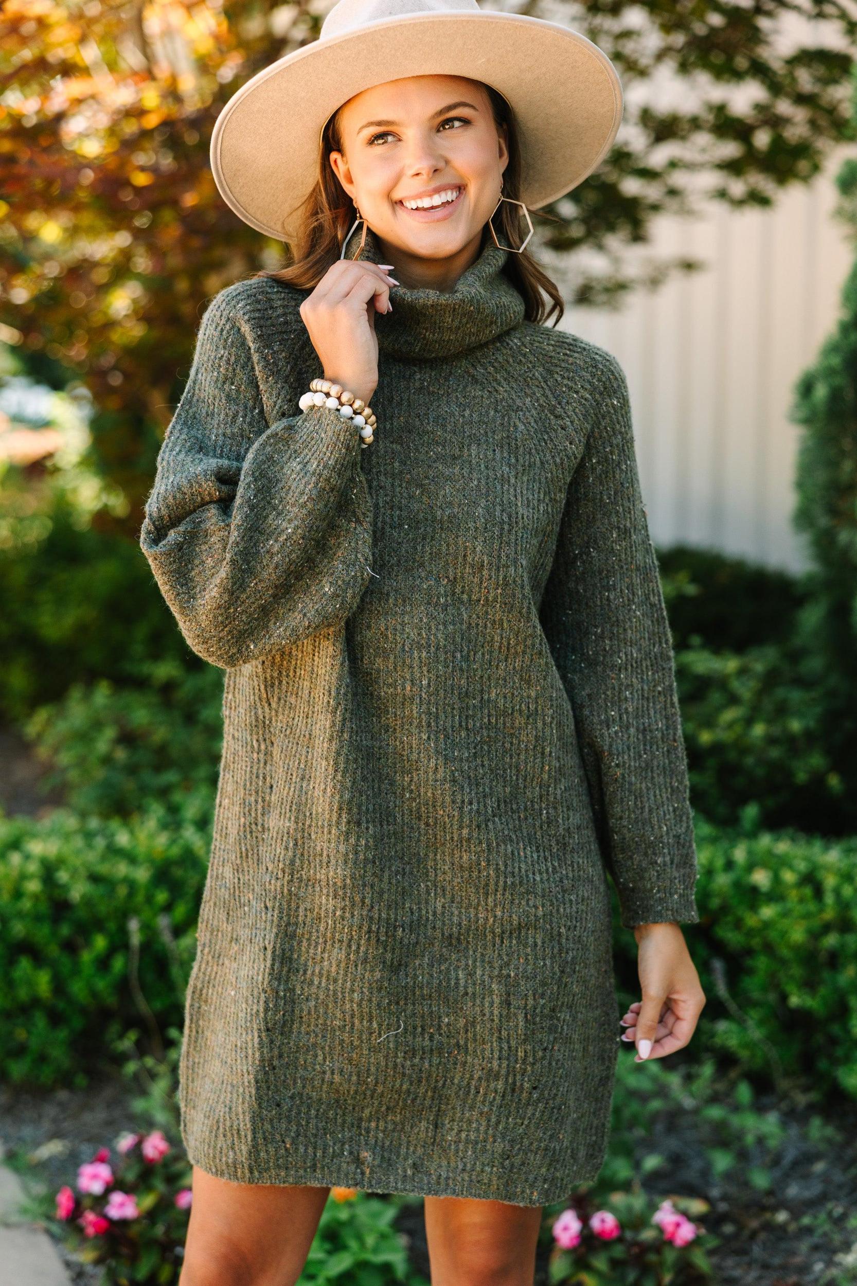 We are really feeling this sweater dress! That confetti knit fabric is so cozy and warm! Not to mention that turtleneck is sure to keep nice and toasty! This sweater dress is going to look fabulous with tall boots for fall or winter! Cozy turtleneck Long dolman sleeves Confetti knit fabric Generous stretch Sydney is wearing the small.