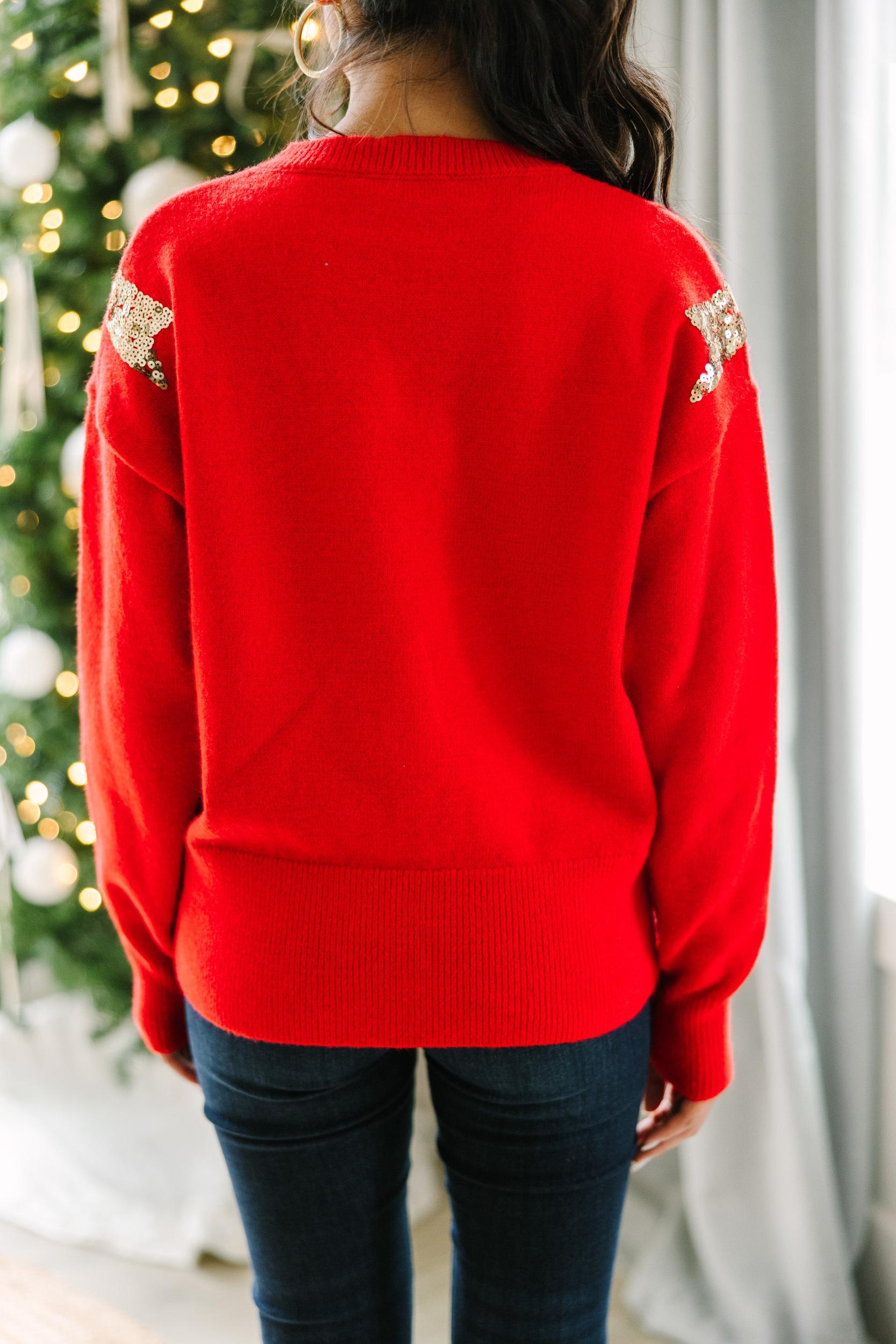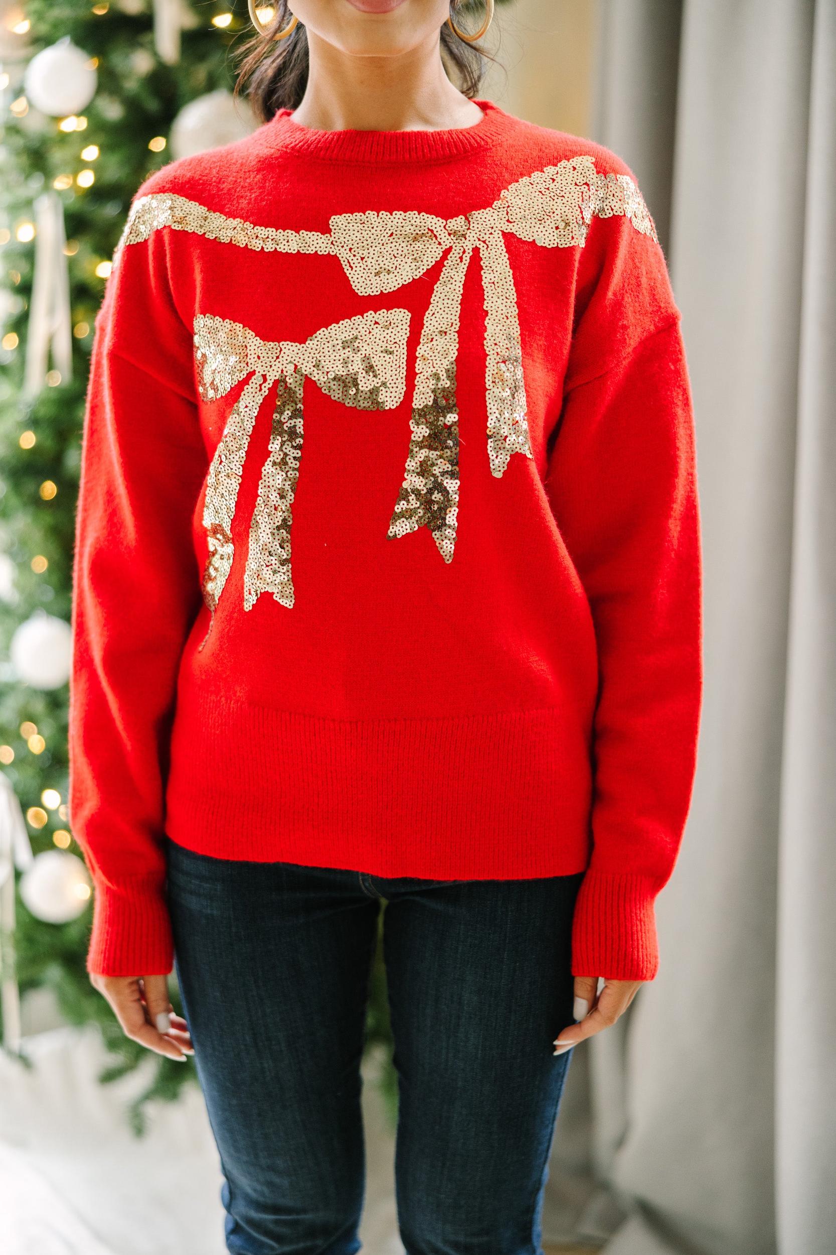 This shimmering sweater will have you feeling like the present you are! Those sequin bows are just too cute! This sweater is going to be the perfect holiday sweater to reach for any day of the week! Round neckline Long sleeves Sequin bows Generous stretch Cindy is wearing the small.