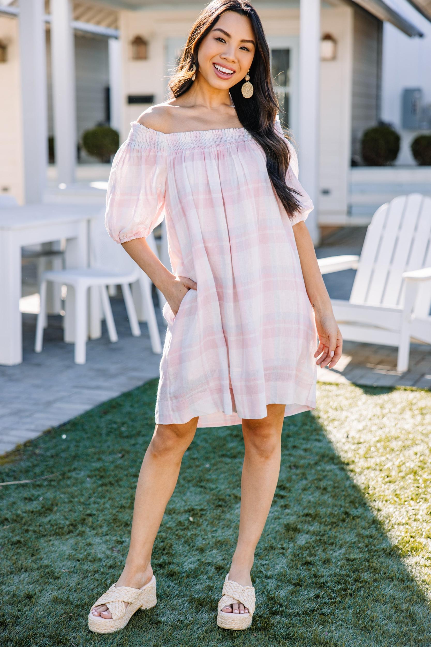This adorable little dress will have you feeling just so special! That off the shoulder neckline is perfectly flattering and those little short bubble sleeves are precious! The light plaid print is super cute and sweet as well! This dress features a plaid print, off shoulder neckline, short bubble sleeves, and a babydoll fit. Material has no amount of stretch.Cindy is wearing the small.