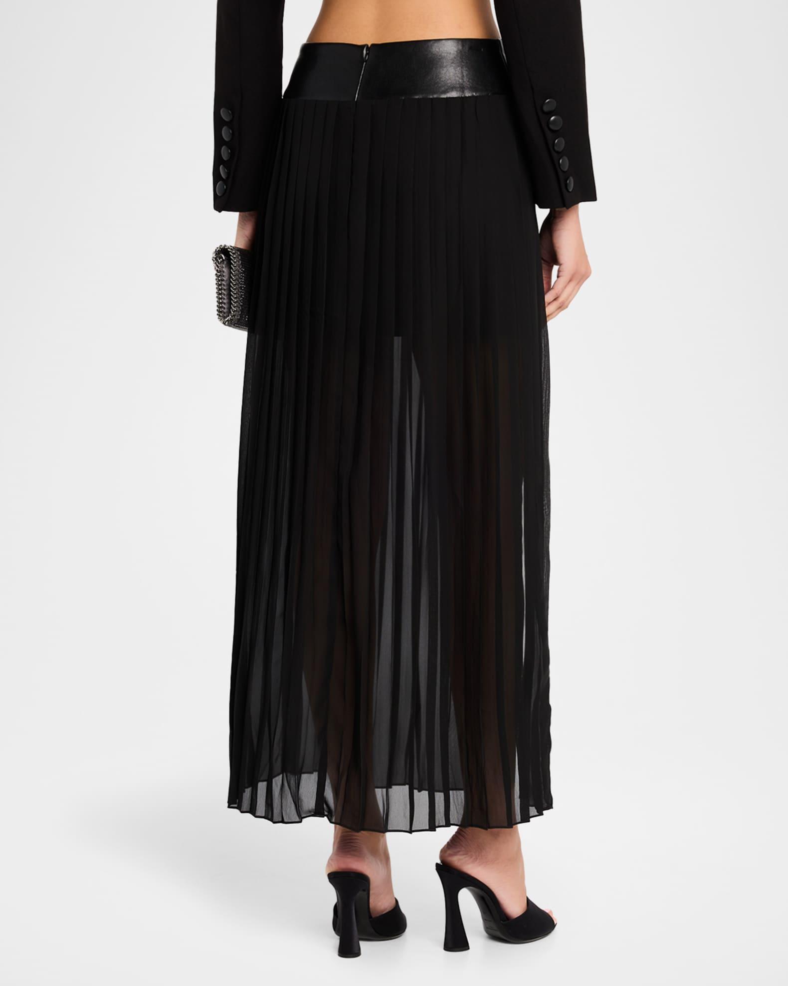 Crafted from delicate georgette, the Felice skirt by AS by DF is finished with accordion pleating High-rise leather waistband Thigh-high side slit; approx. 24.3"L Full length A-line silhouette Center back zipper Polyester Lining: Polyester/spandex Dry clean Imported
