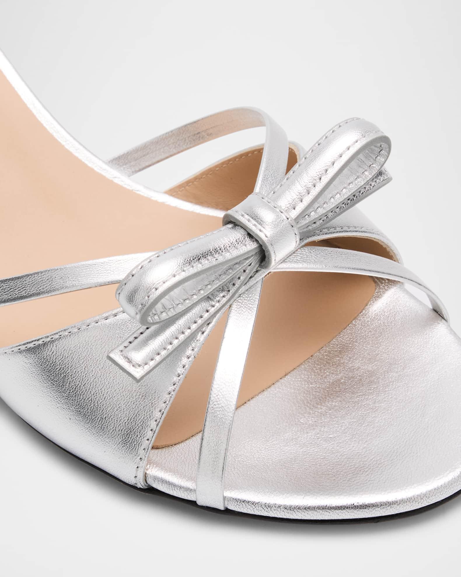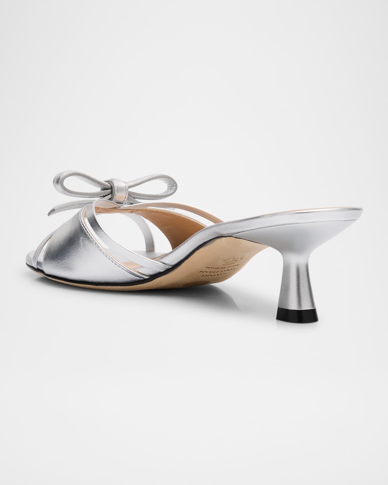 Stuart Weitzman "Felicity" sandals in leather adorned with a top bow 2.00 in / 50 mm kitten heel Open toe with cutout straps Slide style Leather lining and outsole Made in Spain Shipping Direct from Vendor, usually ships within 15 business days.