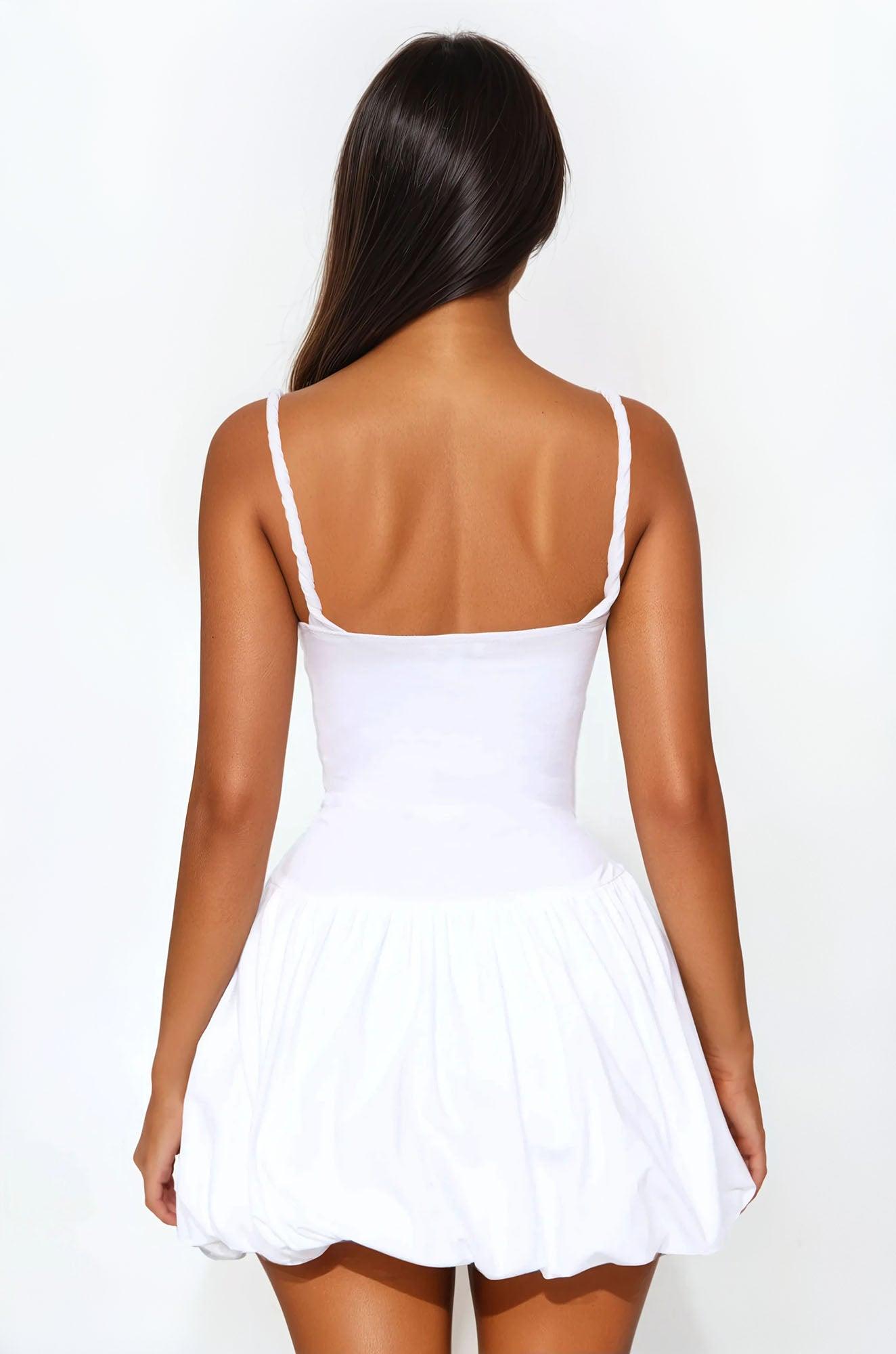 Available In White. Ruched Bubble Mini Dress Scoop neckline Sleeveless Ruched Bubble hem Stretch Length measured flat = 32" Imported 93% Cotton 7% Spandex California Proposition 65WARNING: Cancer and Reproductive Harm - www.P65Warnings.ca.gov.