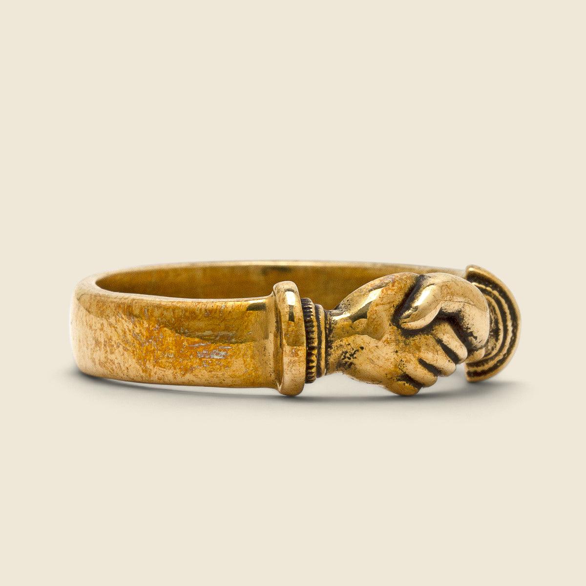 The Fellowship Ring from LHN is inspired by the traditional Irish Claddagh motif which signifies fellowship and loyalty. Hand-carved from solid brass in Brooklyn, NY, and engraved with a handshake motif at the center, this ring is an instant classic that’s made to last. Solid brass Hand-carved handshake motif Inspir