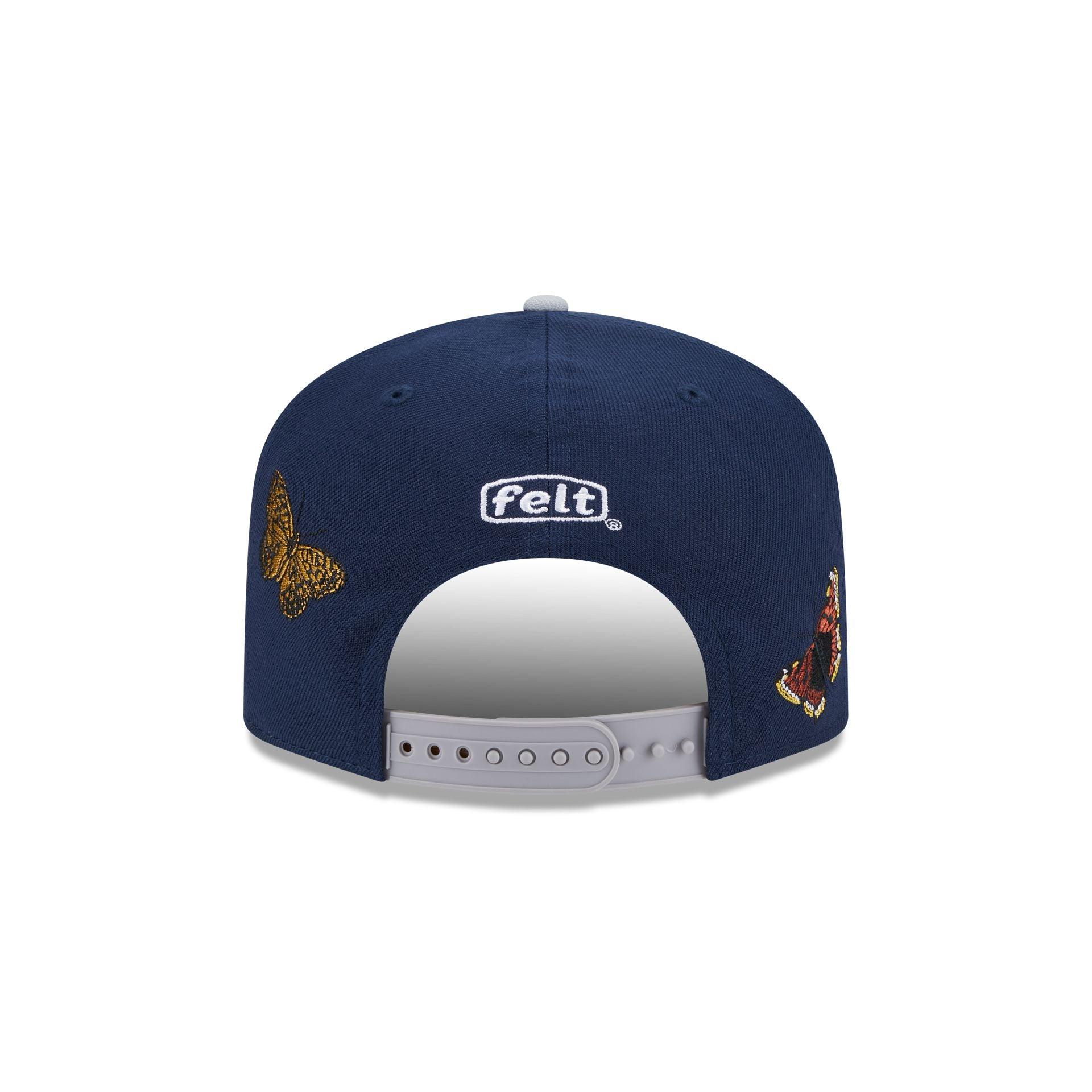 The FELT x Dallas Cowboys 9FIFTY A-Frame Snapback features an embroidered Cowboys logo at the front panels with a FELT logo at the rear. Additional details include nature inspired embroidery throughout the cap, a snapback closure at the rear and a gray undervisor.