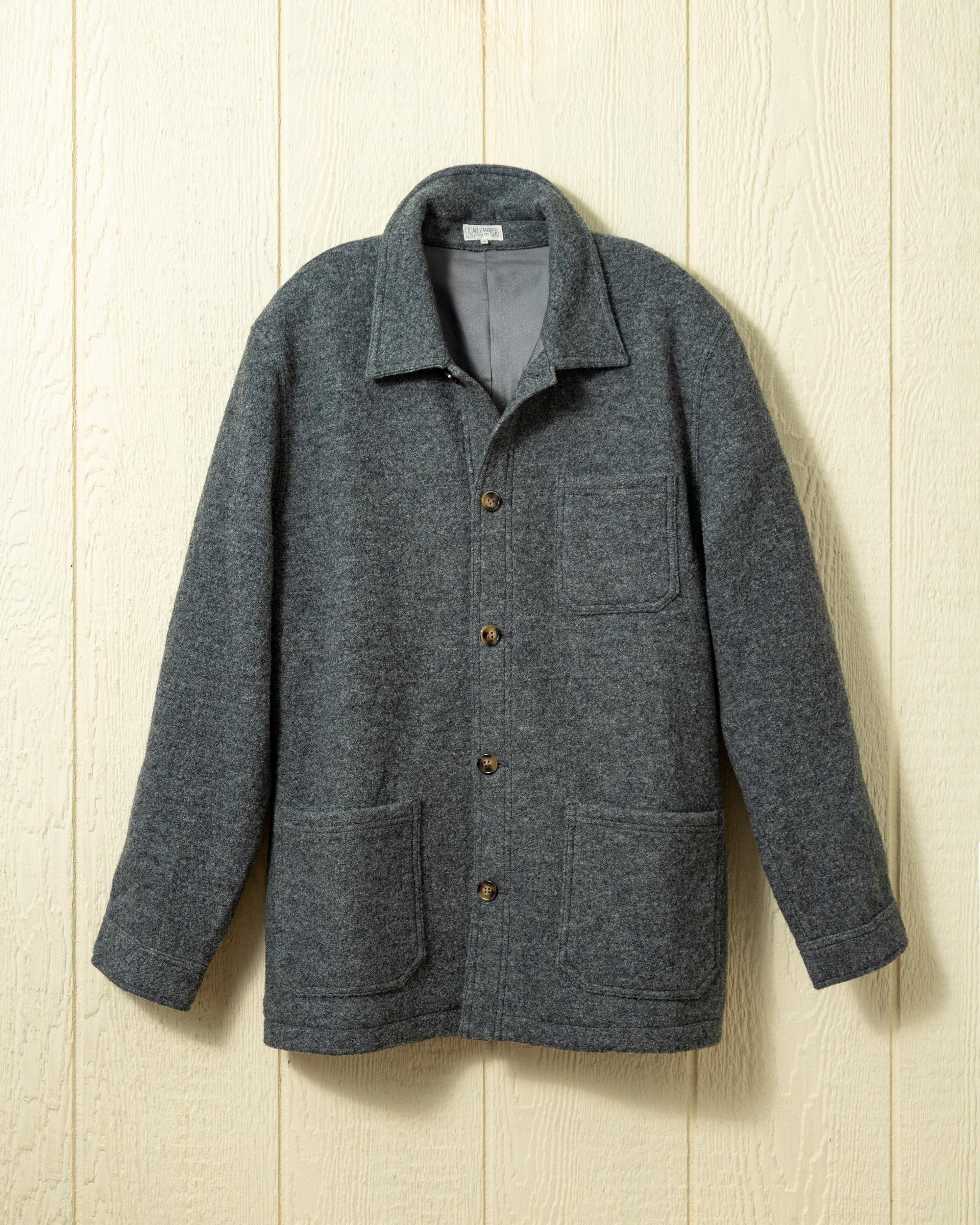We made our iconic work jacket in felted wool, a sturdy but super soft wool blend. Easy to take care of and sharp as always-- the Felted Wool French Workman's Jacket is the all purpose outerwear you need this fall.