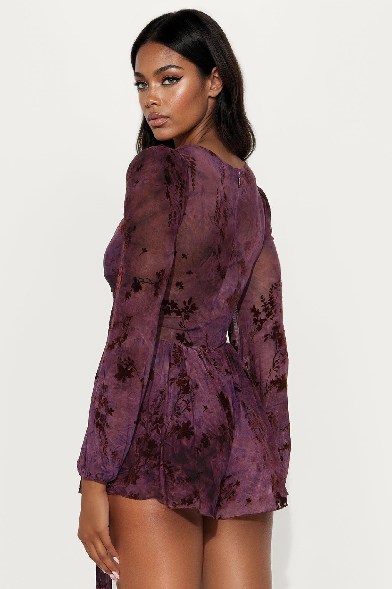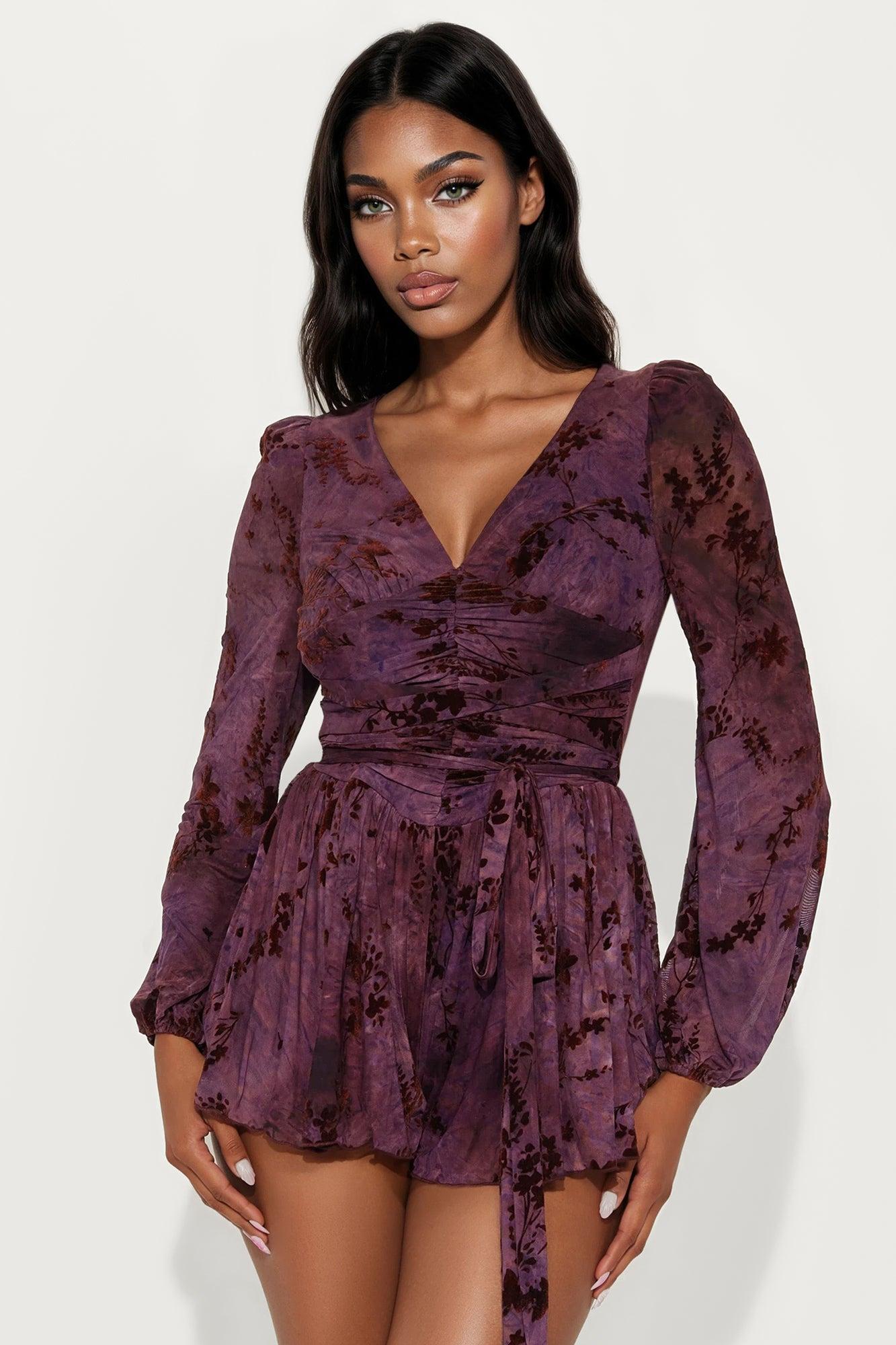 Available In Wine. Romper Stretch Lined Invisible Back Zip Closure Waist Tie Detail Flowy Short Self: 90% Polyester 10% Spandex Lining: 100% Polyester Imported
