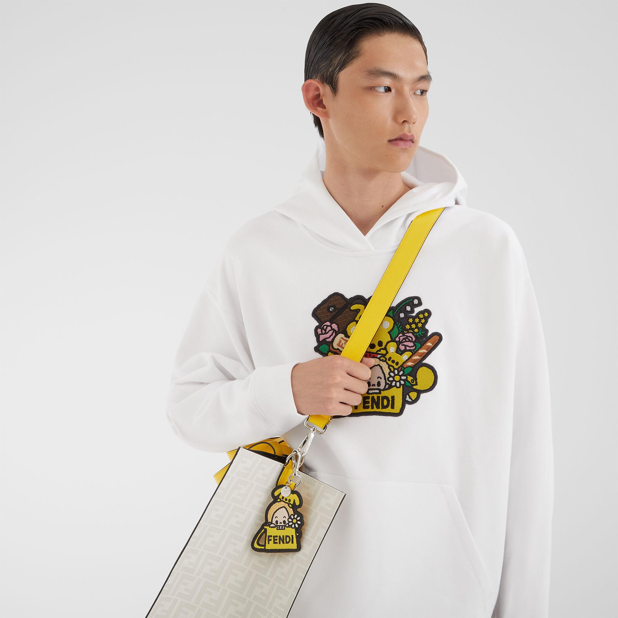 Bag charm made of lightly padded, multicolor leather with low-sheen finish, and brown FF canvas. Part of the "Silvia and The Baguette" capsule collection, designed in collaboration with Japanese artist TAROUT. Palladium-finish metalware with logo clip. Made in Italy