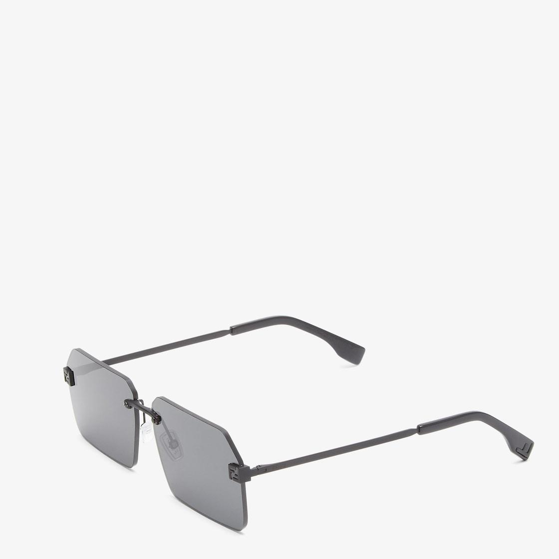 Fendi Sky ultra-light, rectangular eyeglasses with dark gray lenses. Metal end pieces with 3D FF. Matt black metal temples and black acetate tips. Adjustable nose pads. Made in Italy