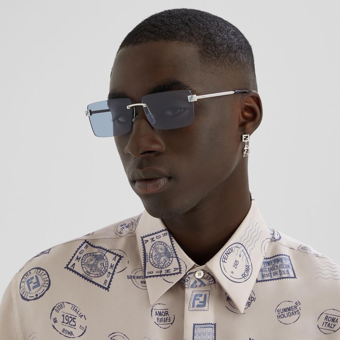 Earring with FF motif and shell-shaped pendant engraved with a stylized FF logo. Made of palladium-finish metal. Made in Italy
