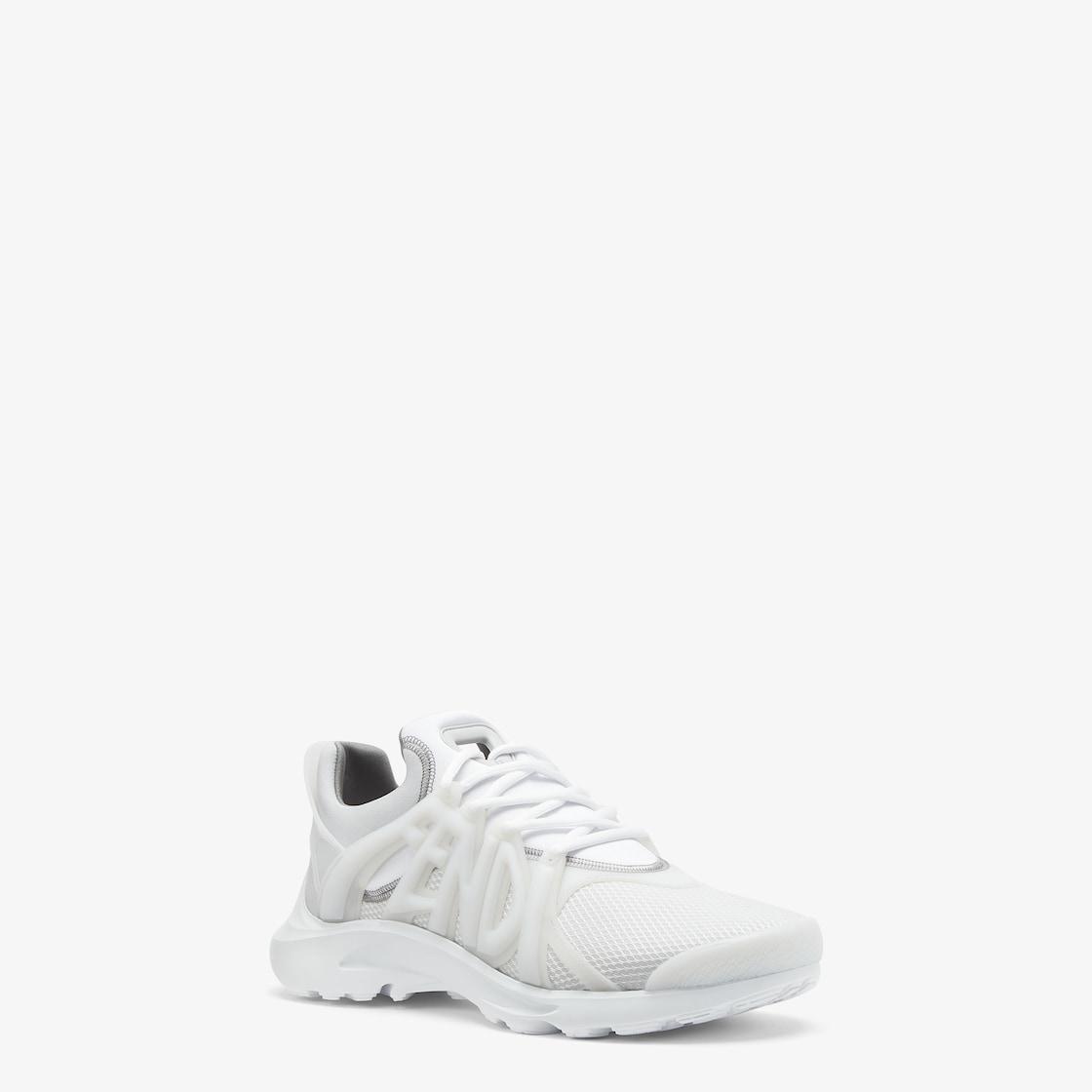 Slip-on sneakers made of white technical mesh with white neoprene details. Oversized Fendi lettering on the sides and semi-transparent rubber details. Lightweight rubber flexible running sole. Made in Italy