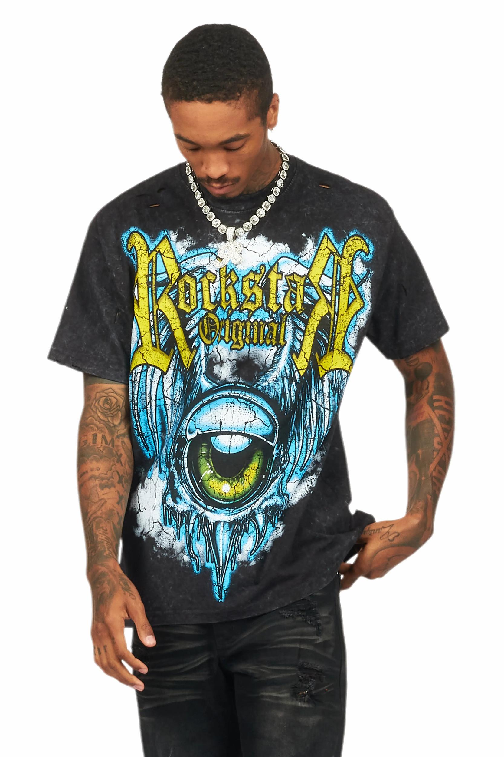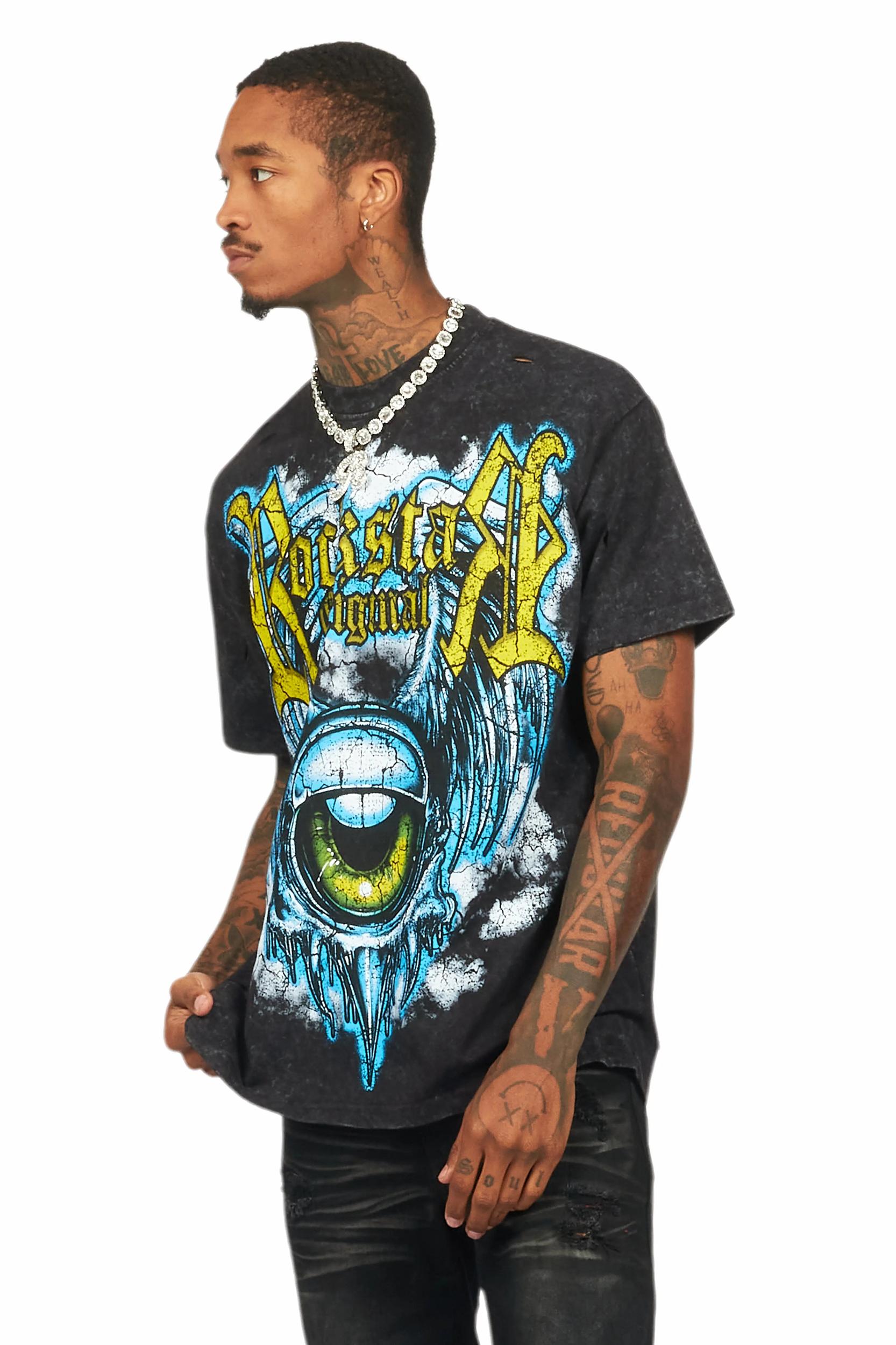 Fenton Vintage Black Oversized Graphic T-Shirt Male