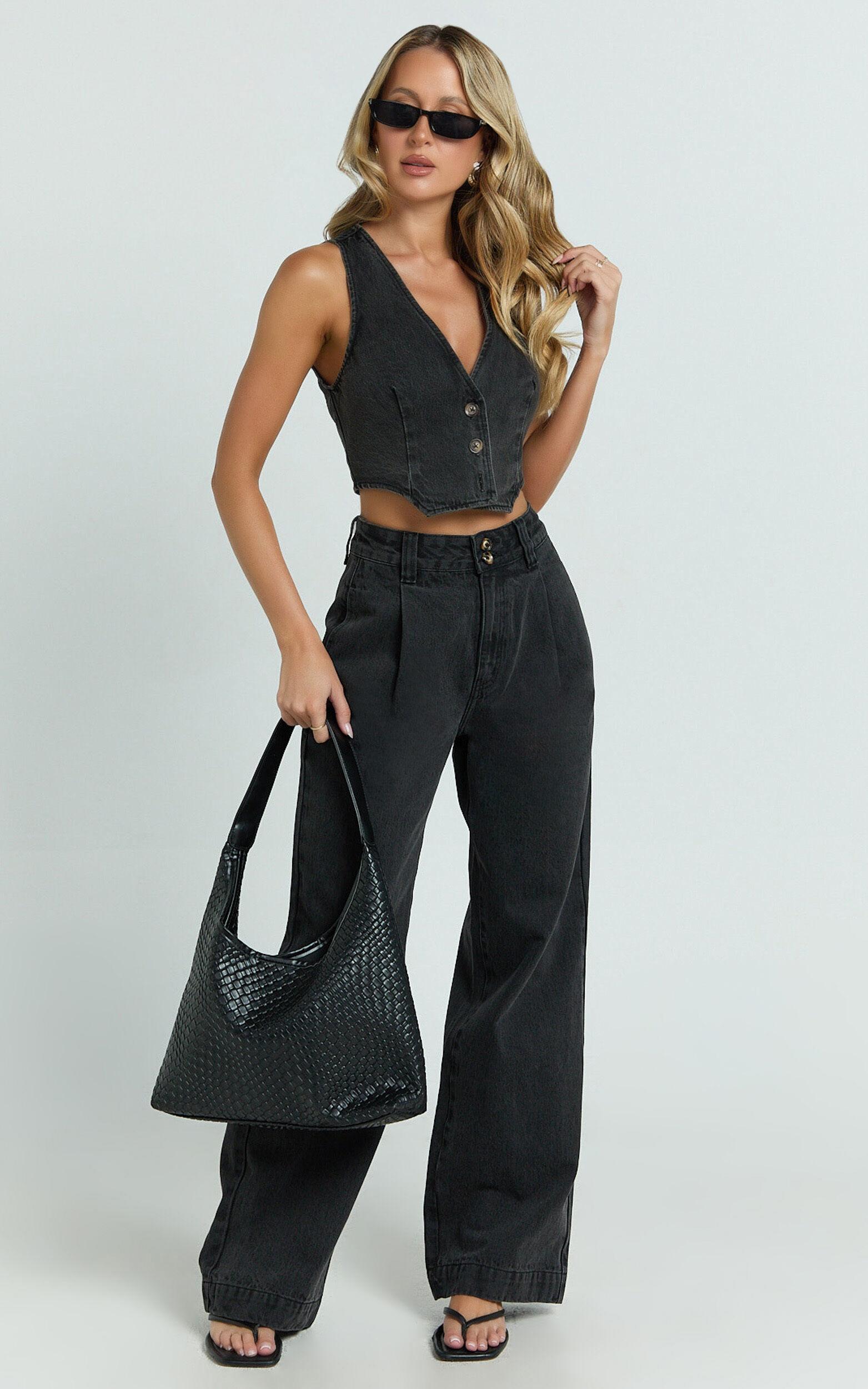 Fergie Jeans - Denim High Waisted Straight Leg Denim Jeans in Washed Black