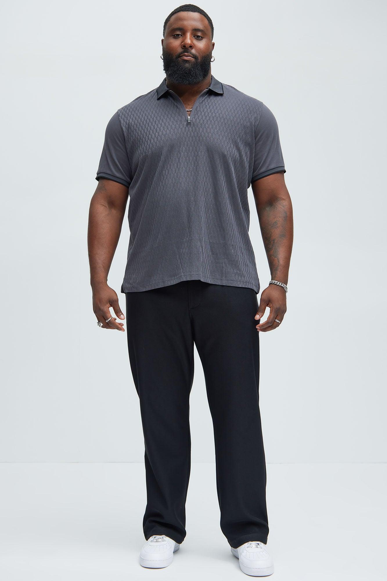 Available In Charcoal. Fold Down Collar Short Sleeve Textured Detail 100% Cotton Imported