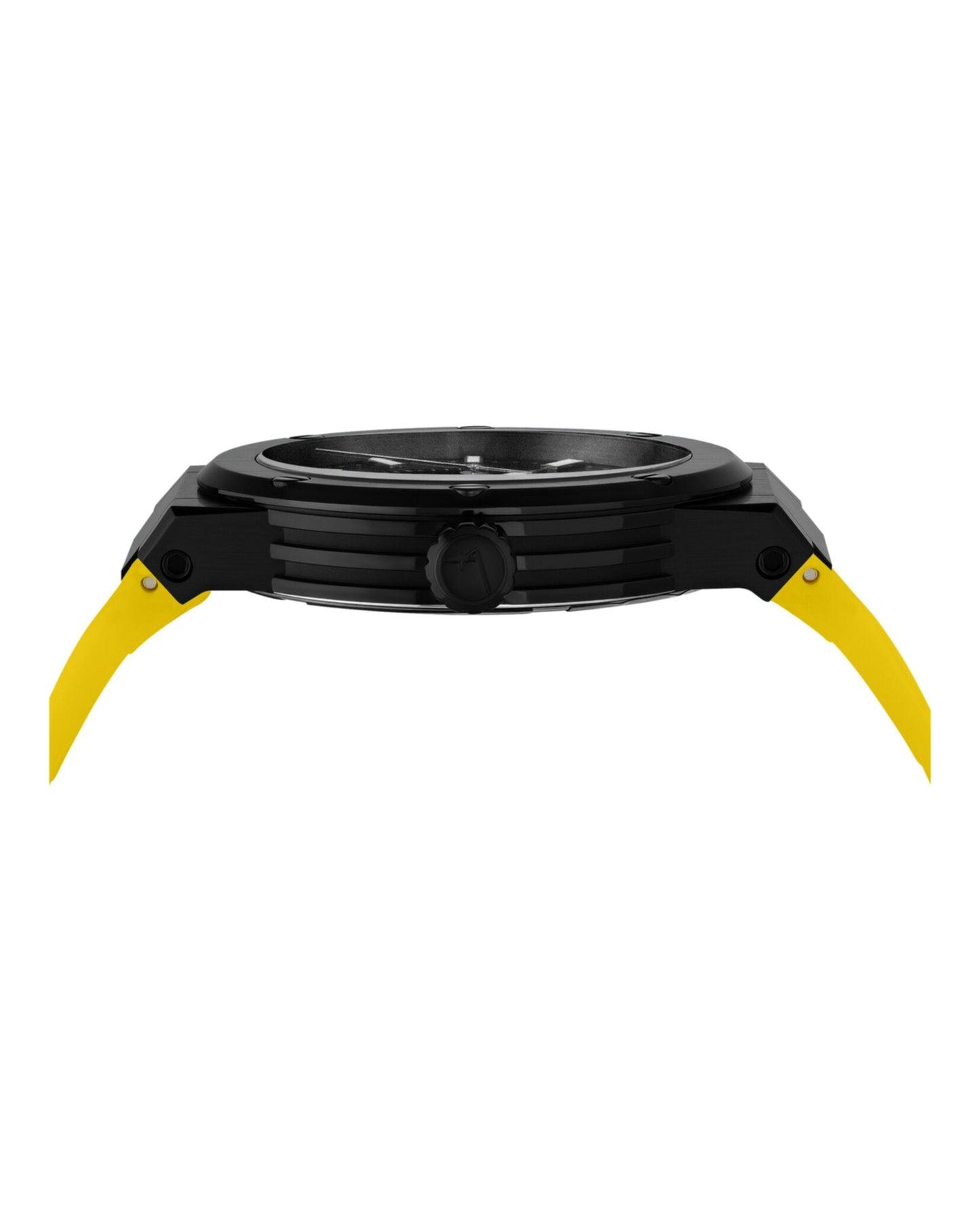 Fulfilled by our friends at Carro Luxury MaisonDETAILS Swiss Made 3 Hand Date Quartz Movement 44.00mm IP Black Case Yellow Silicone Strap Black Guilloche Dial 10 ATM Ardillon Buckle 2 year limited warranty + 2
