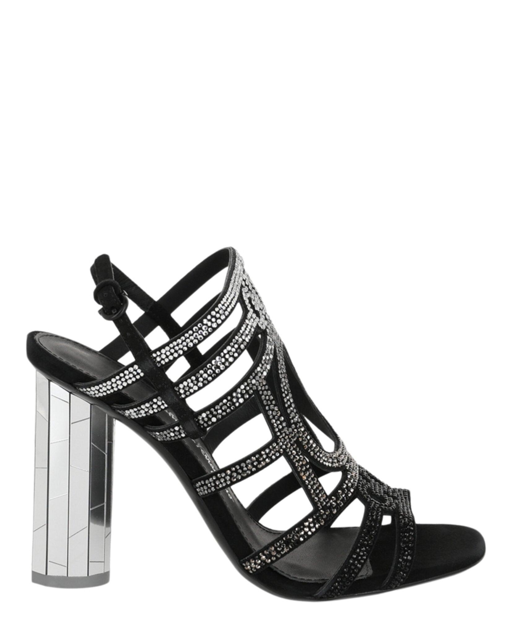 Ombre crystal embellished design Gancini logo and circular cutout detail at the vamp