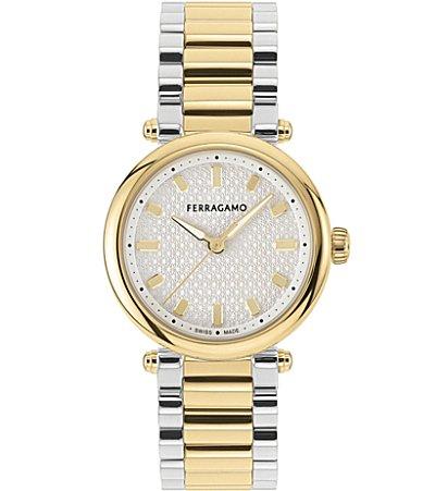 Salvatore Ferragamo Womens Vega Upper East Quartz Analog Two Tone Stainless Steel Bracelet Watch