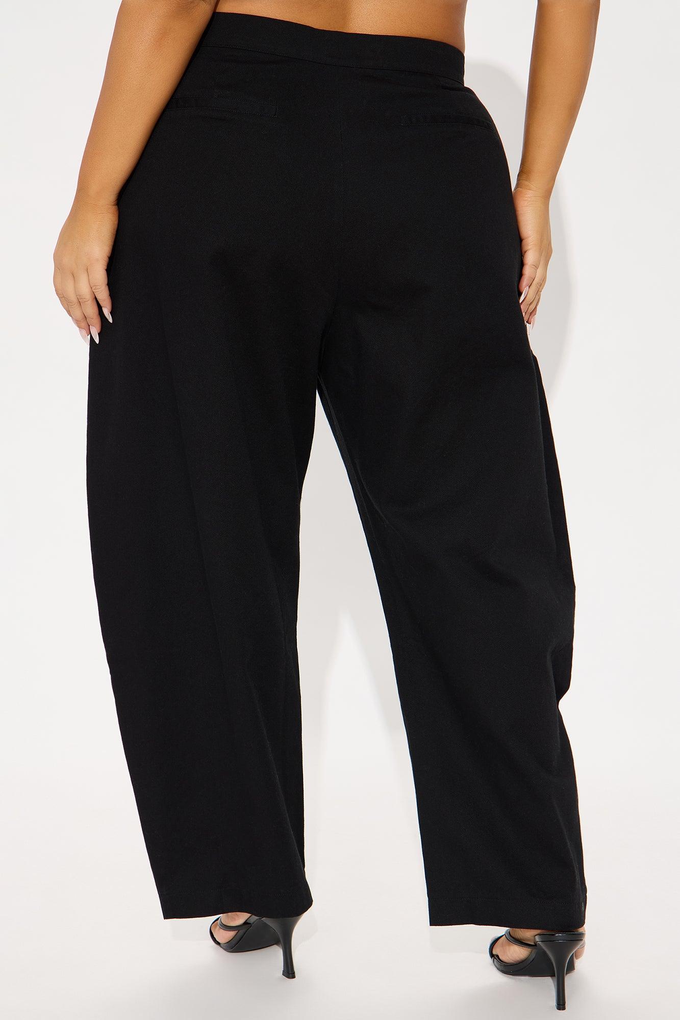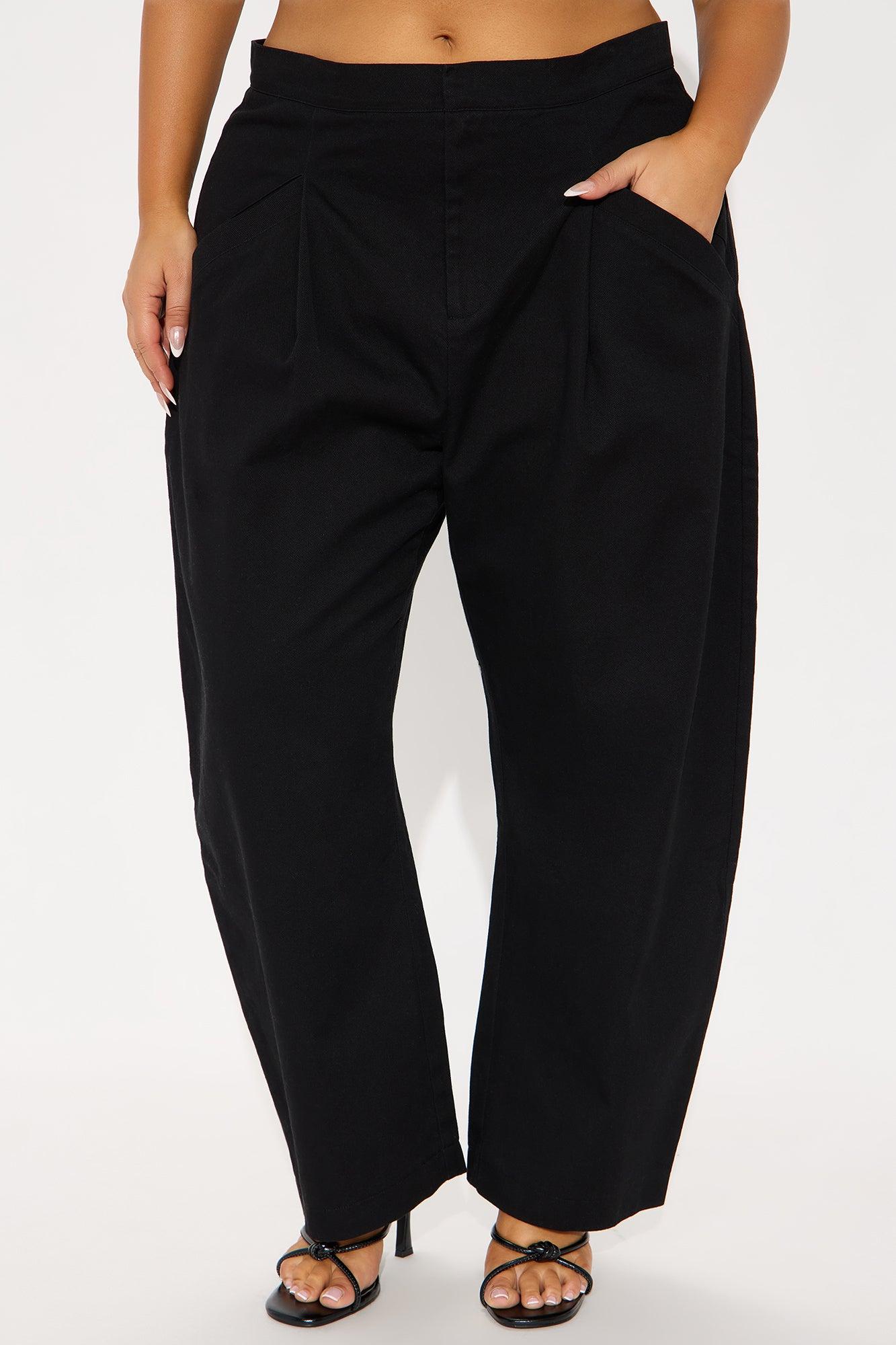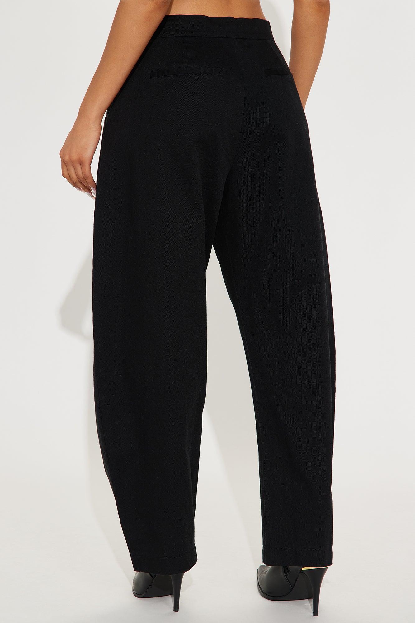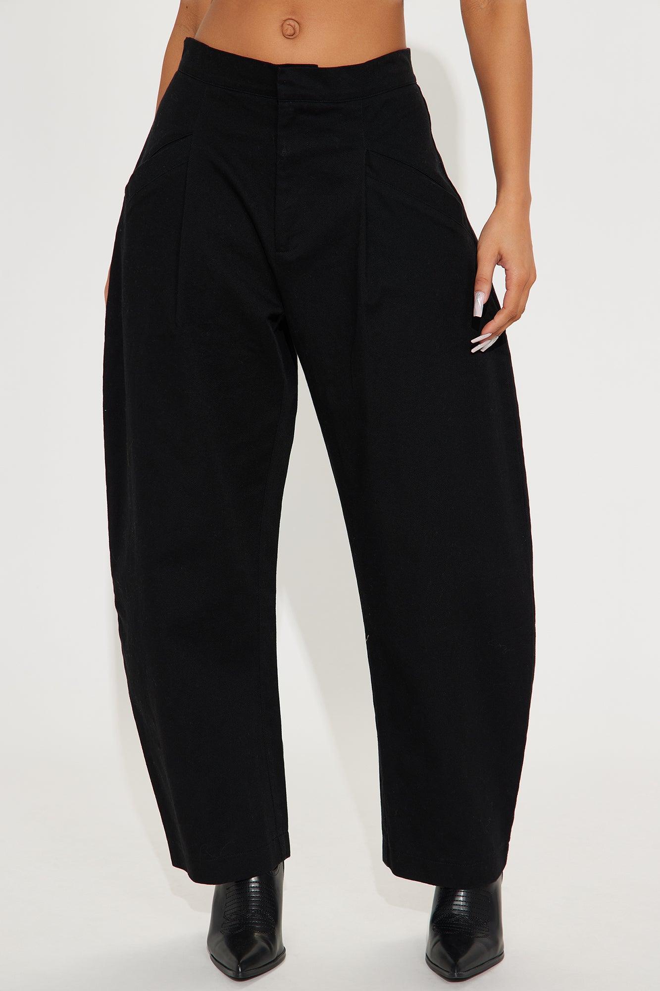 WOMEN'S BARREL LEG PANTS (BLACK) - BLACK / 31/32