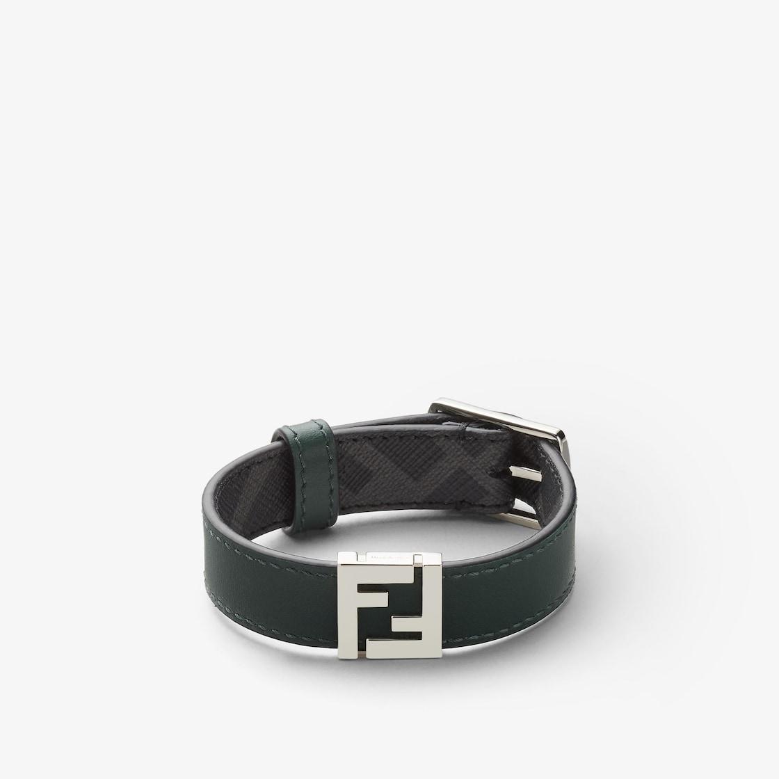 FF Bracelet Black FF Canvas and dark green leather bracelet