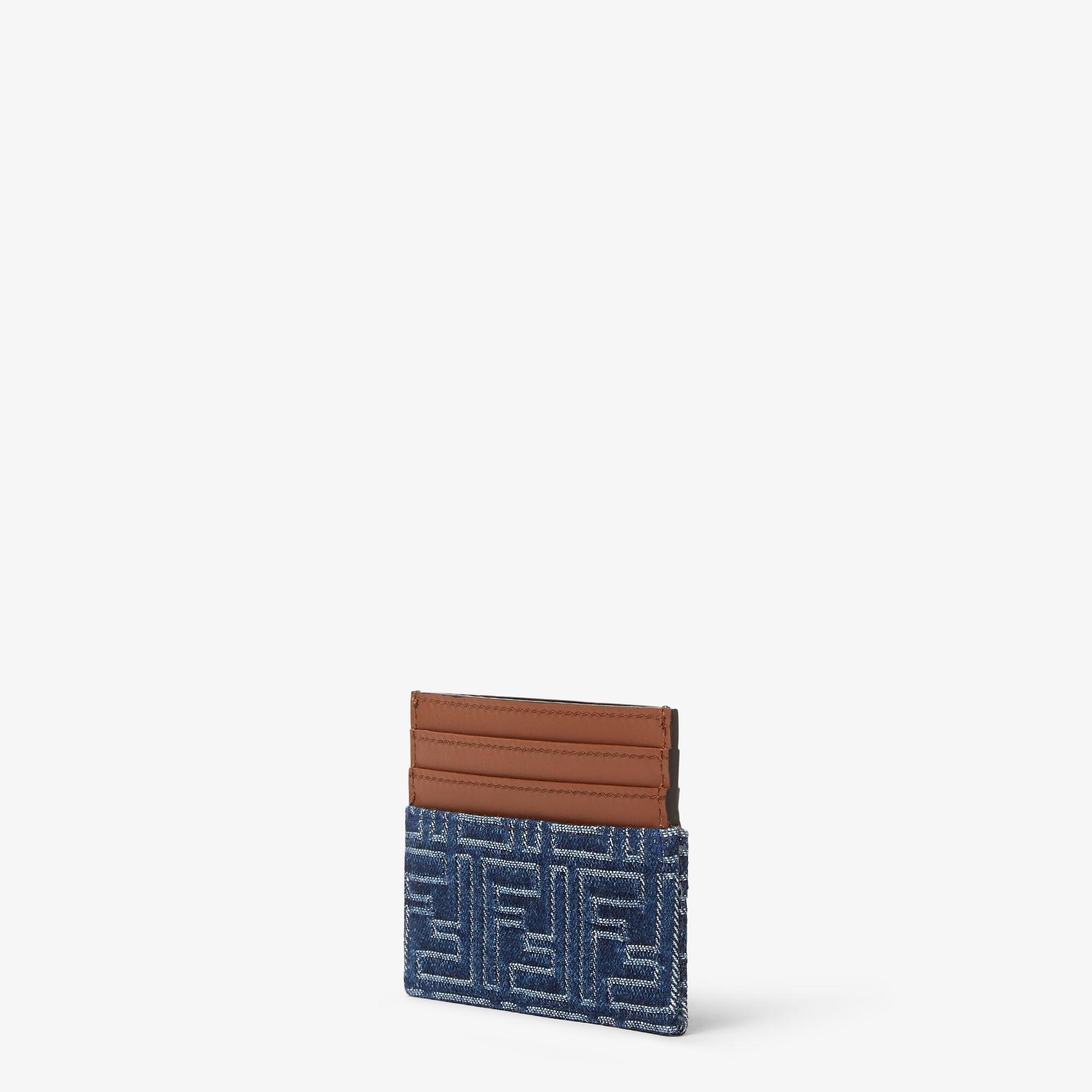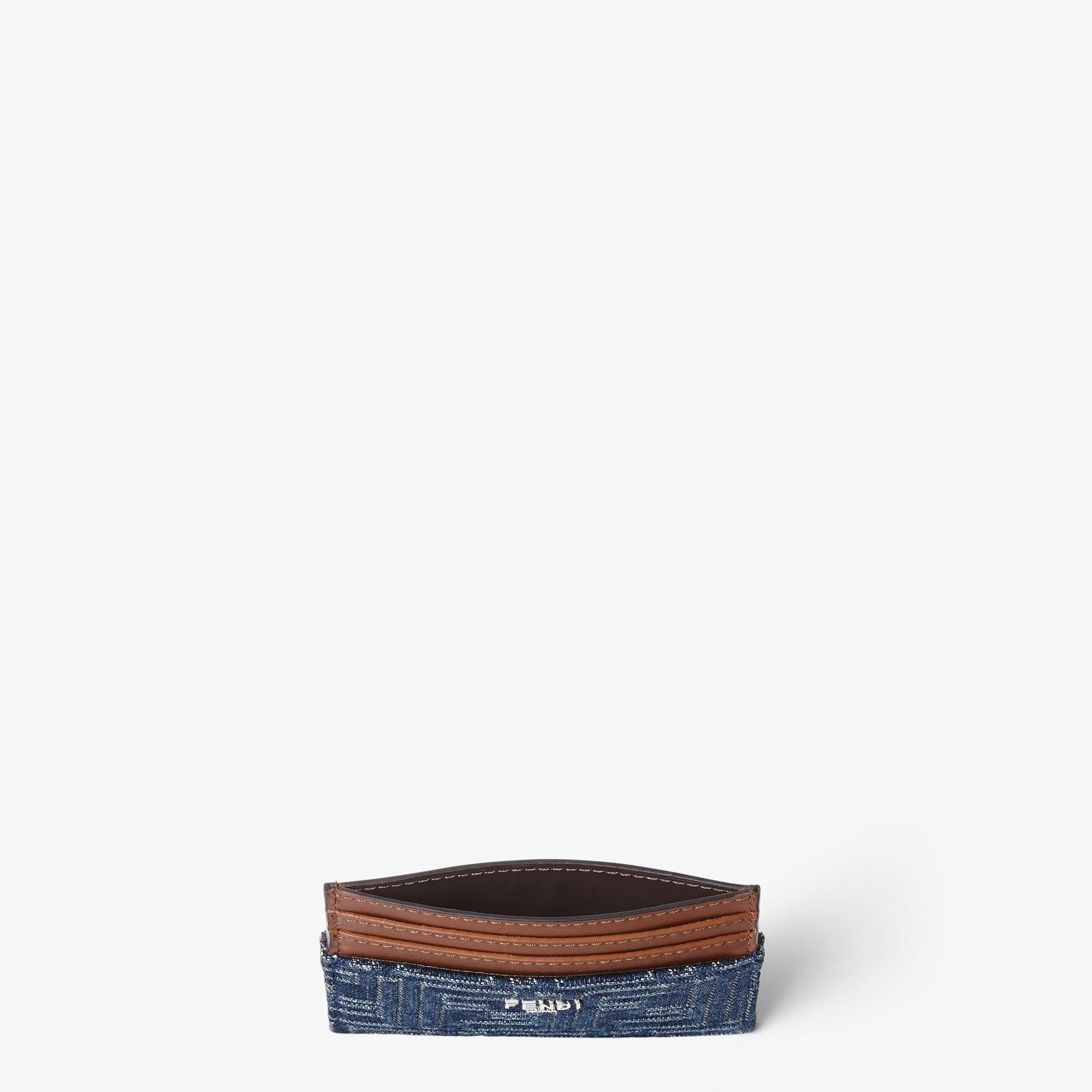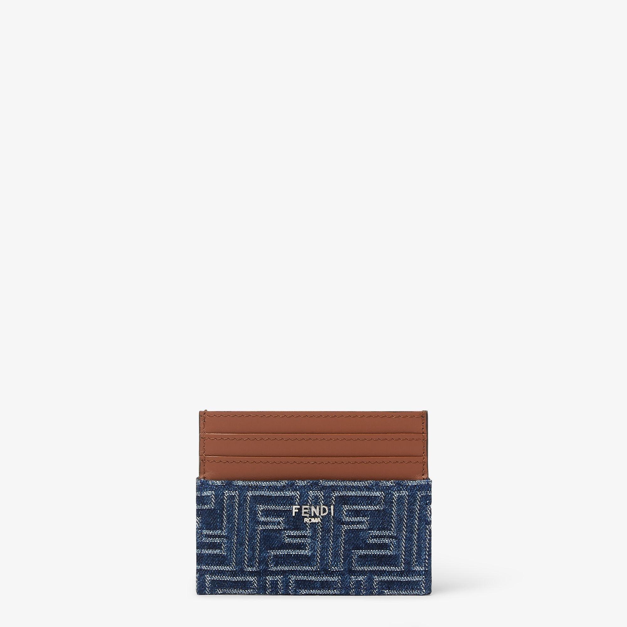 FF Card HolderBrown leather and blue denim-effect FF Jacquard card holder