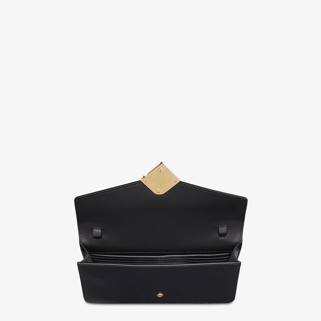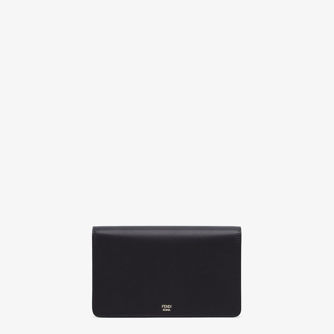 FF Diamonds compact wallet with geometric flap and diagonal FF logo. Interior with single compartment, flat pocket and six slot card holder. Adjustable leather and chain shoulder straps, both removable. Made of black leather. Gold-finish metalware. Made in Italy