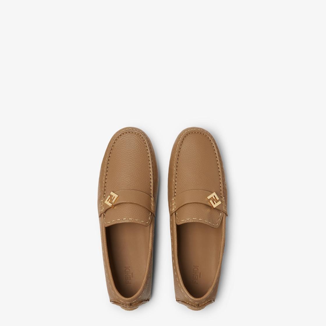 Driving loafers. Made of beige full-grain leather. Featuring rubber injection soles, FF detail and Fendi lettering. Embellished with a gold-finish metal FF on the upper. Made in Italy