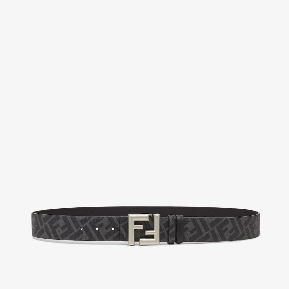 Reversible belt. FF Rounded buckle with stud closure. Made of black leather. Black FF canvas lining. Vintage, frosted palladium-finish metalware. Made in Italy