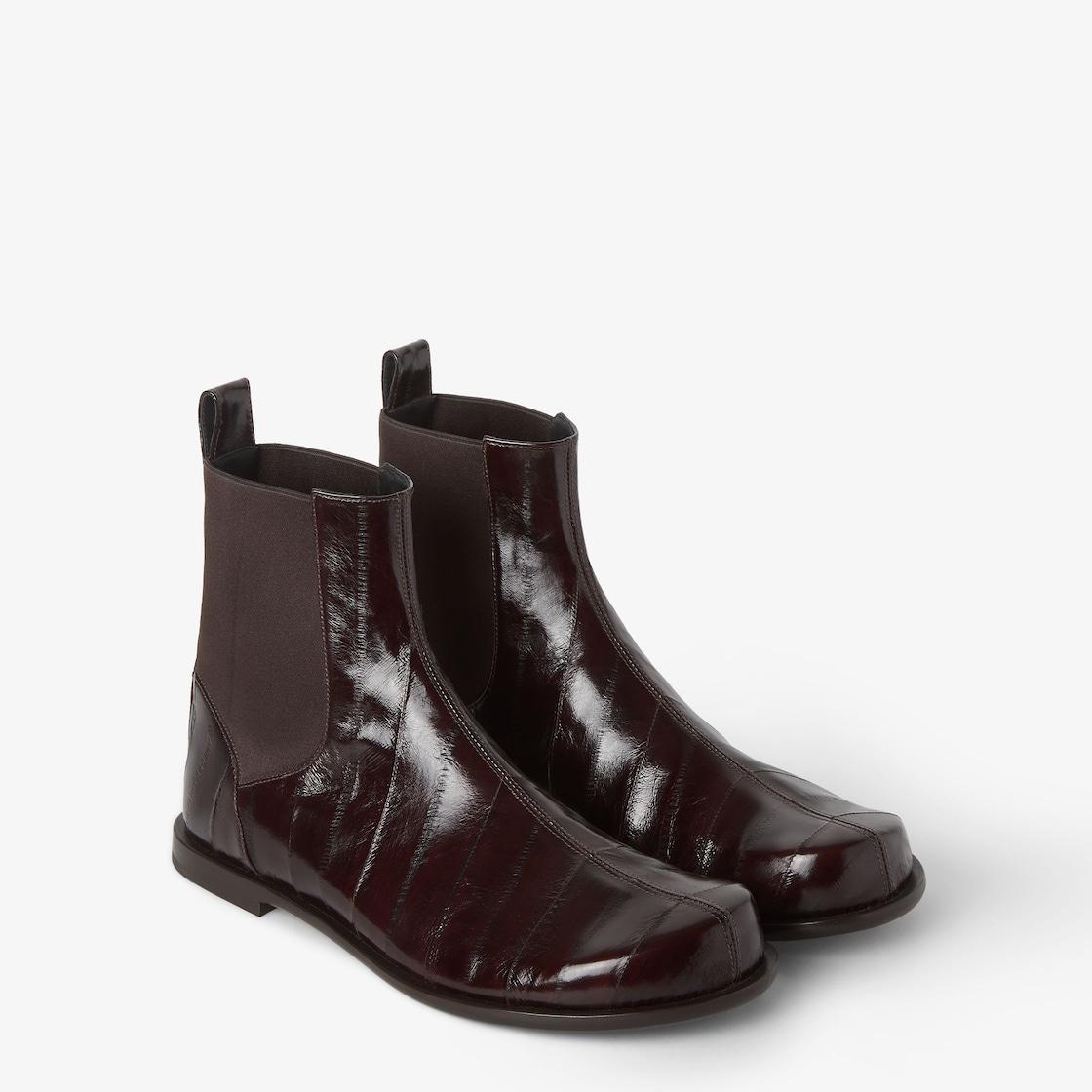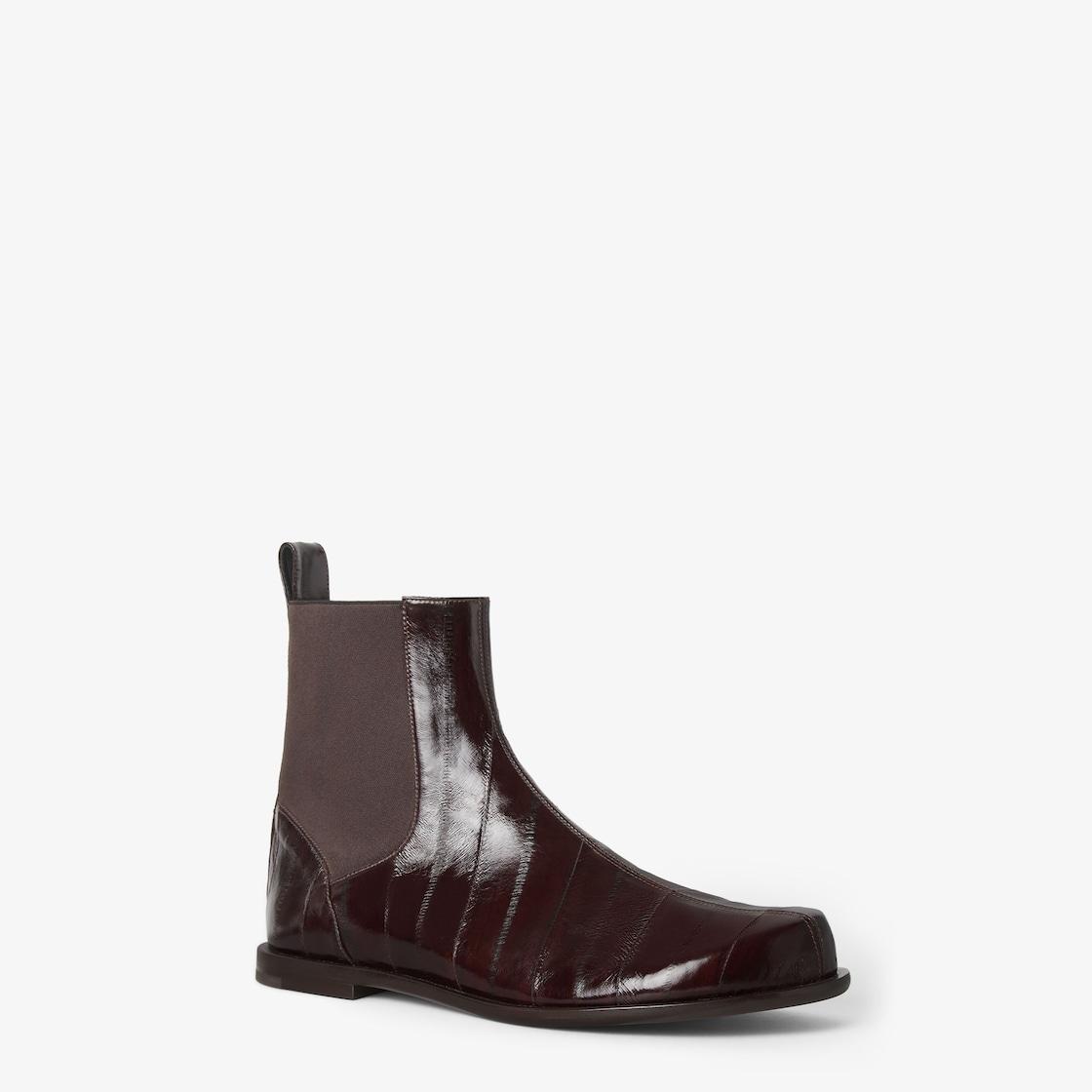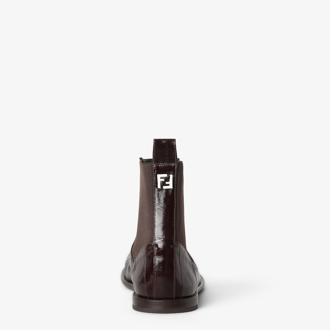 Chelsea boots featuring the iconic rounded toe of the Fall-Winter 2025 fashion show. Made of shiny brown hagfish leather. Finished with matching elastic side inserts. Metal FF detail with shiny palladium finish on the heel, with hagfish leather loop. Leather soles. Made in Italy