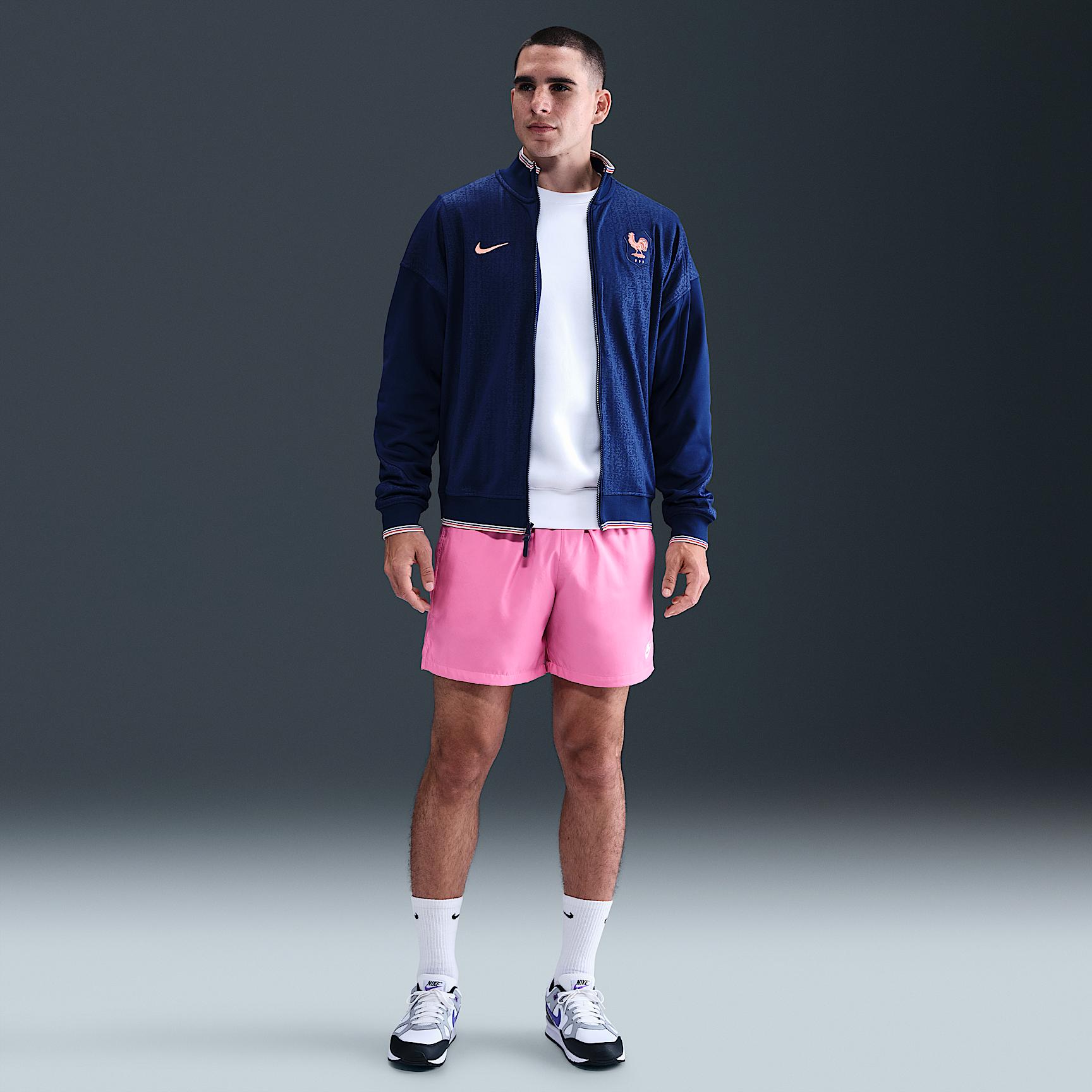 After conquering the basics, take your skills to the next level with this FFF Academy Pro jacket. Sweat-wicking technology pairs with a roomy fit to give you comfortable coverage that lets you show your team pride. [] Product Details:Zippered front pockets. 100% polyester. Machine wash. Imported. Style: FZ9390; Color: Blue Void/Light Madder Root; Size: L; Gender: Male; Age Group: Adult | FFF Academy Pro Mens Nike Dri-FIT Soccer Anthem Jacket in Blue, Size: Large | FZ9390-492