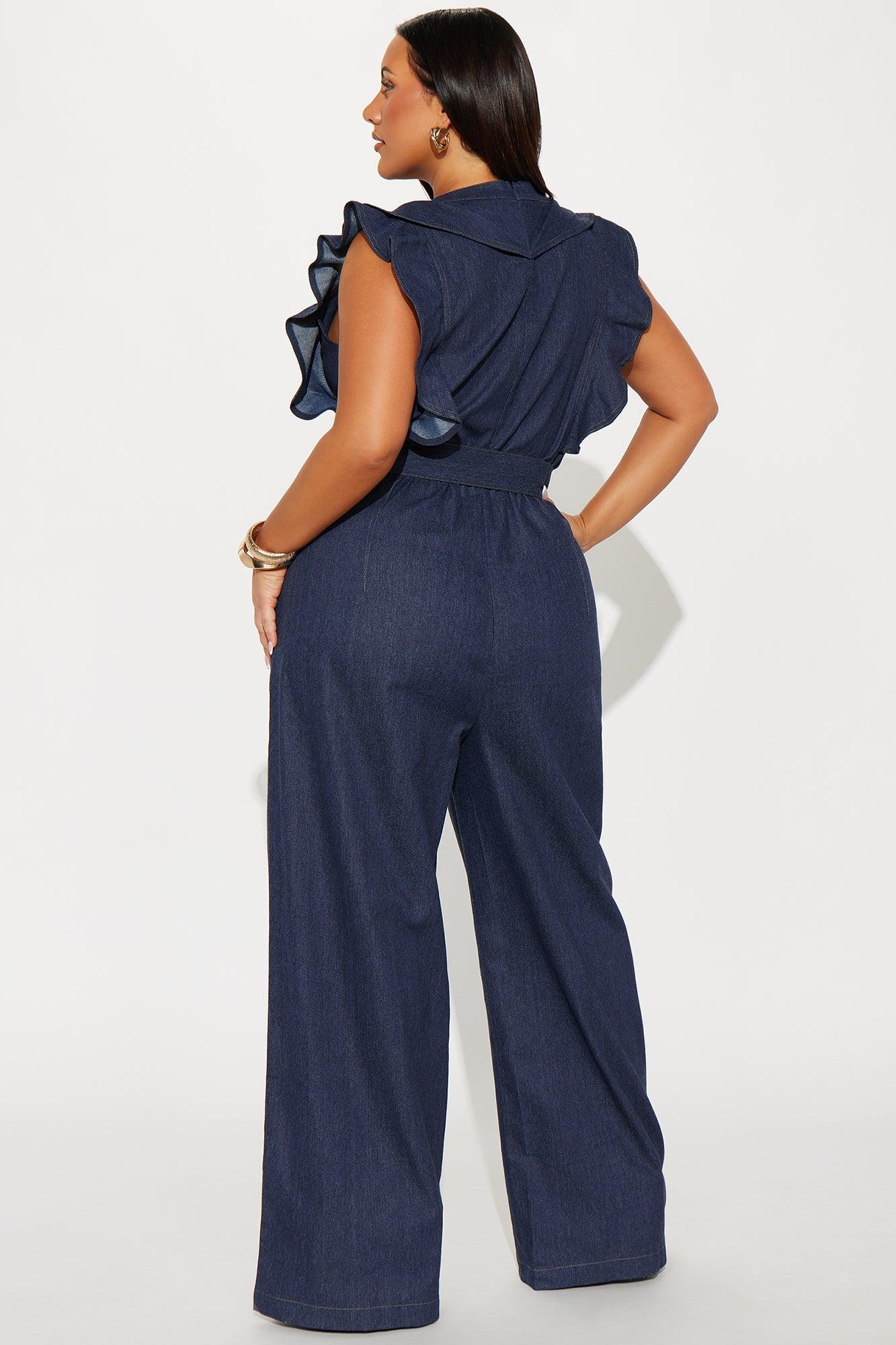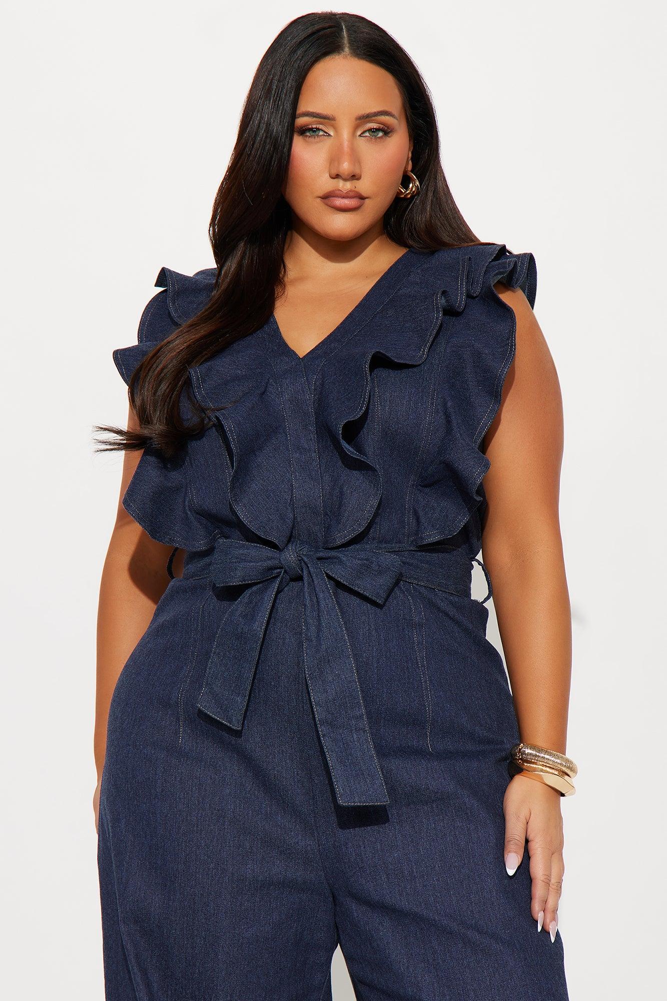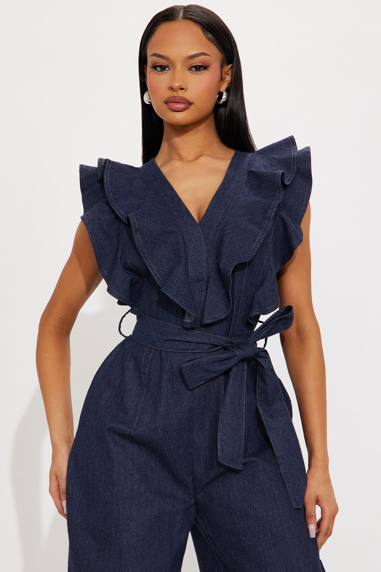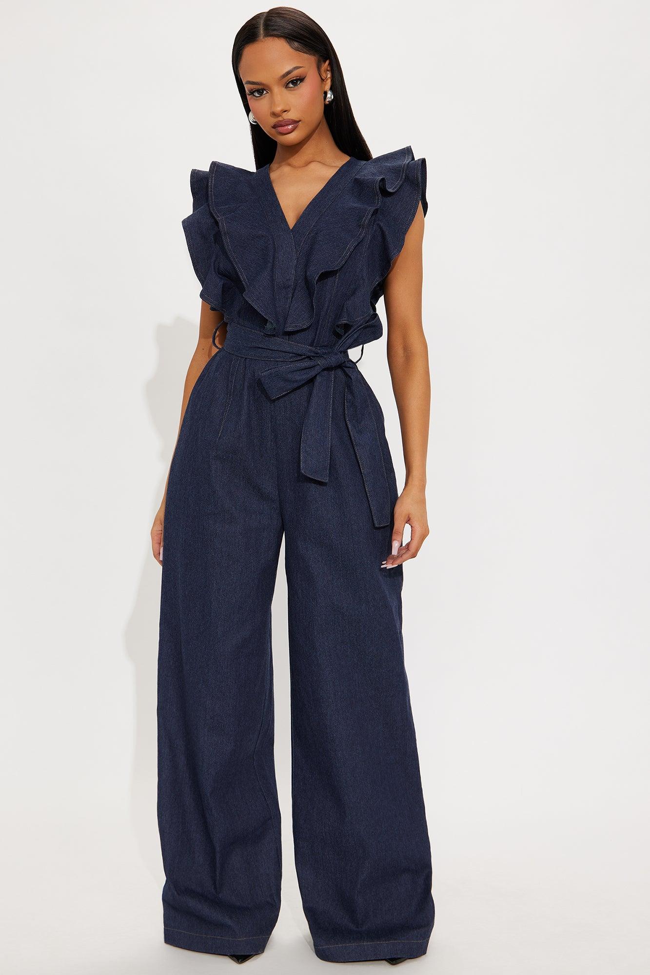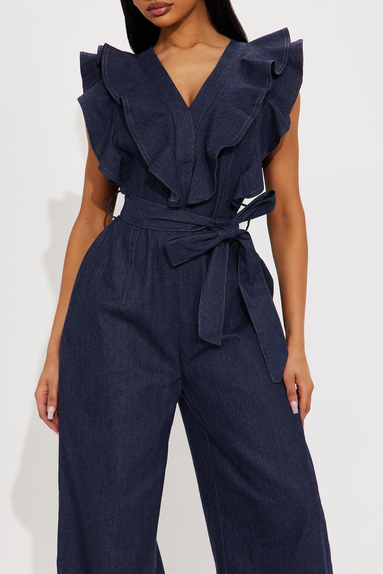 Slay The Day Denim Jumpsuit - Dark Denim Female