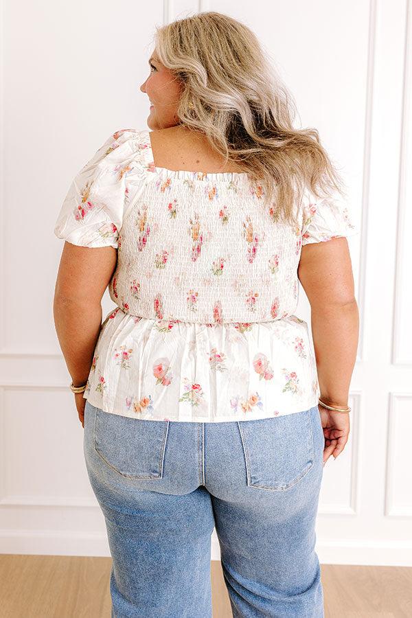 - Cute floral looks start here! This smocked floral top adds a flirty touch to your lineup, made for easy-going days, coffee runs, and charming strolls.