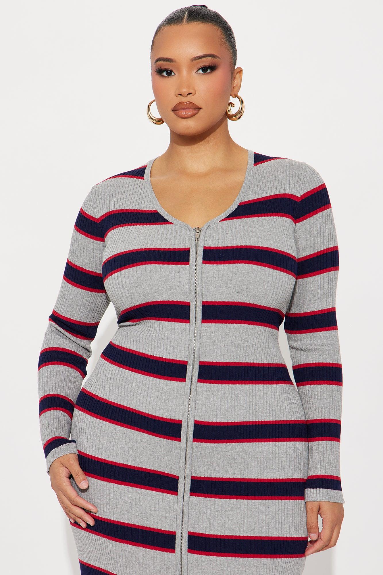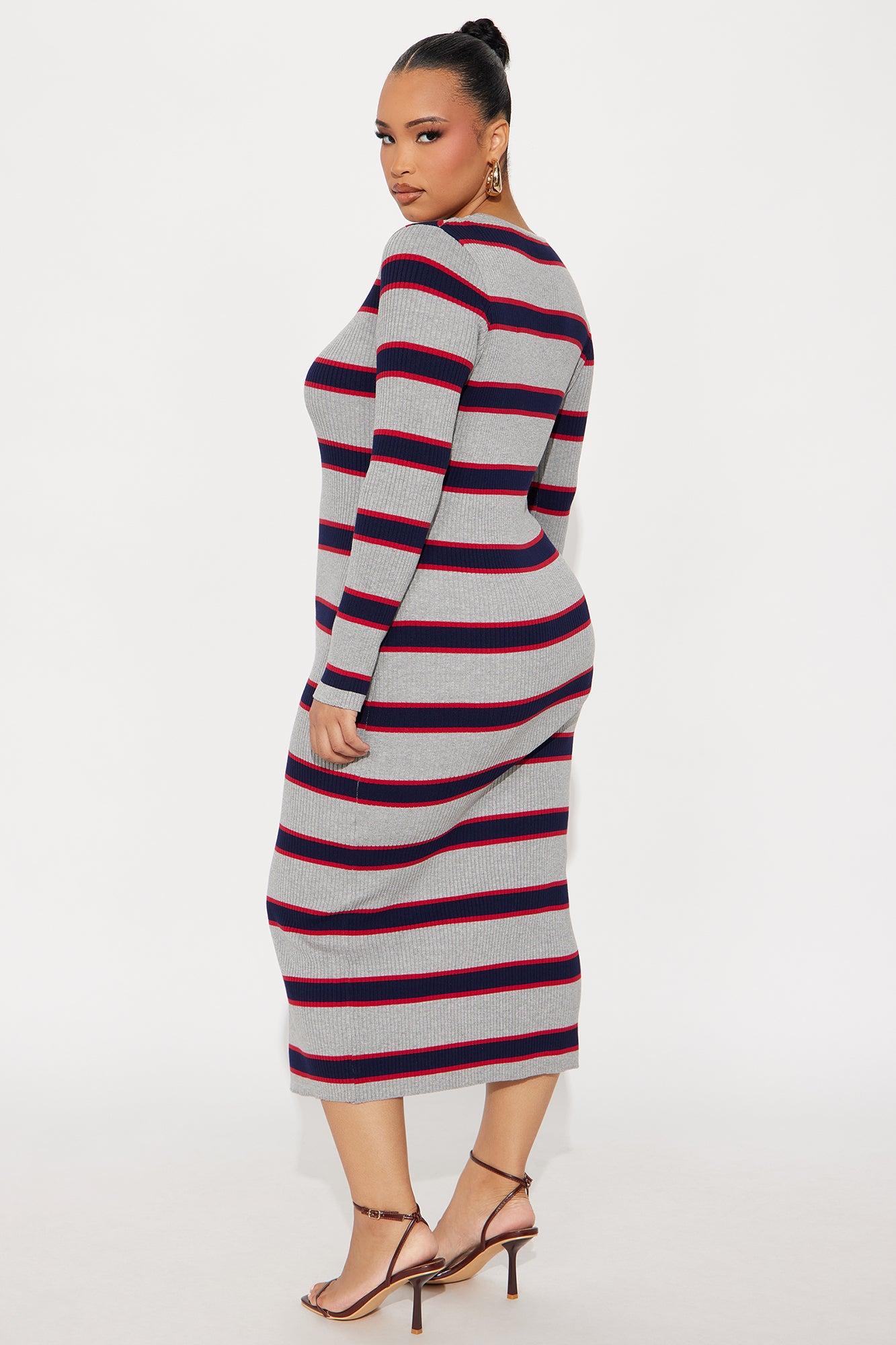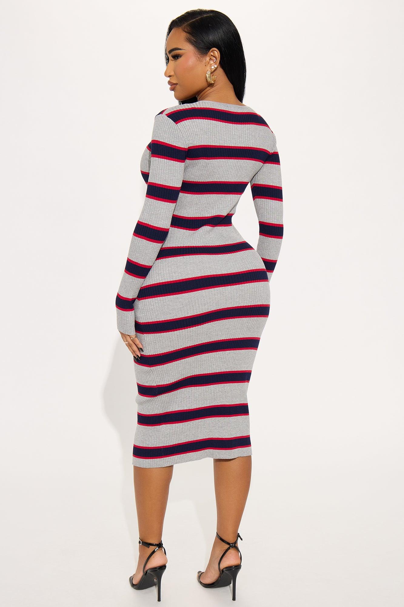Fierce Mode Striped Midi Dress - Grey/combo Female