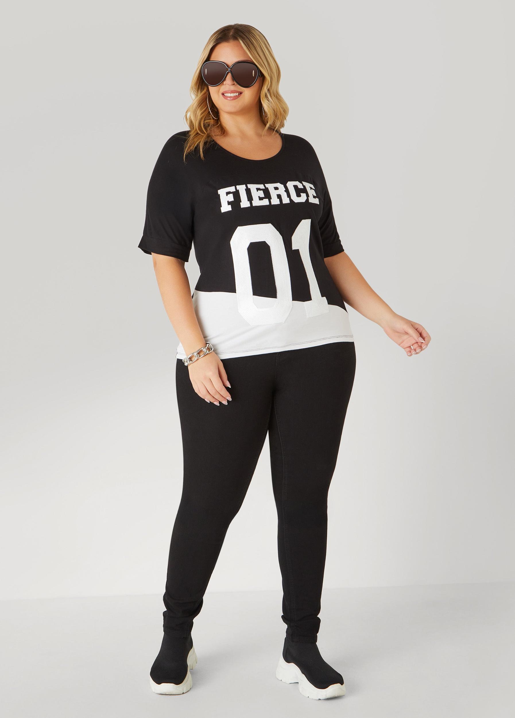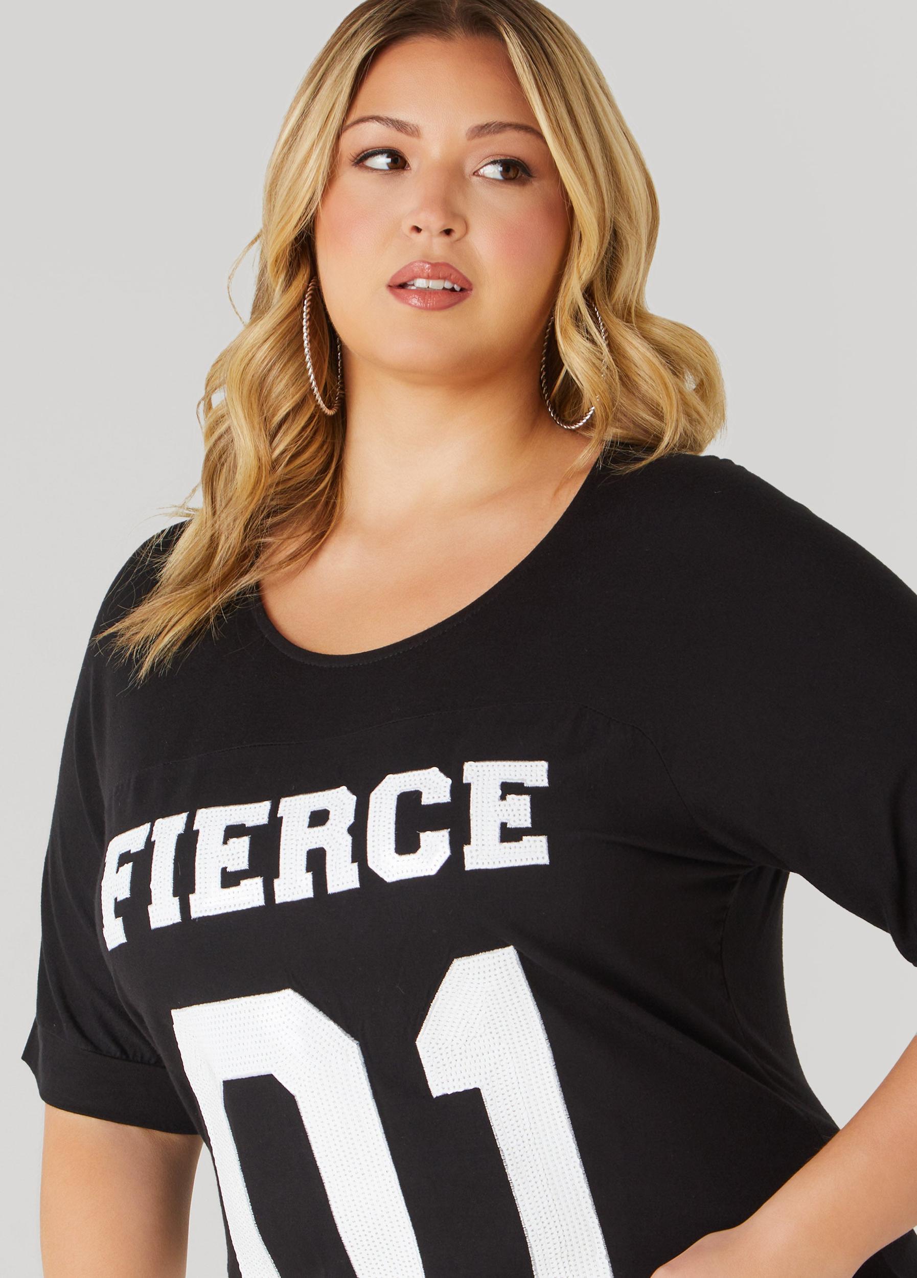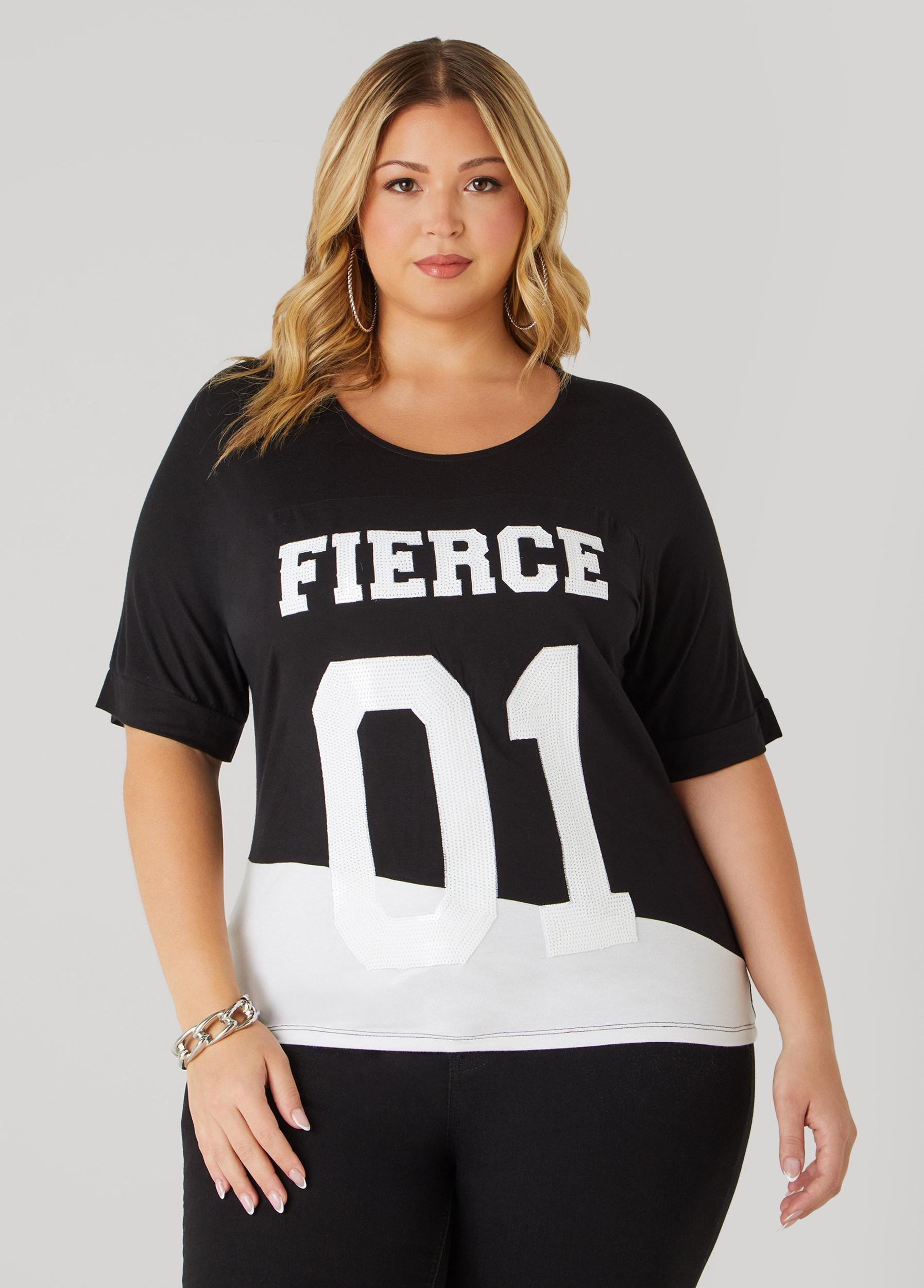 This two-tone tee features sequin lettering that spells fierce alongside a 01 that feels like your game-day number.
